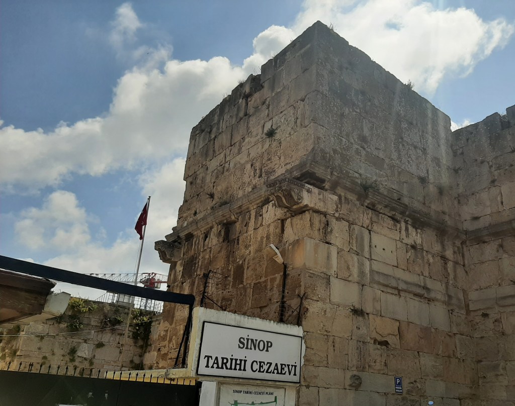 Kalacağımız misafirhane, Tarihi Sinop Cezaevinin hemen yanında, ama 1999’da müzeye dönüştürülen cezaevi ciddi bir tadilata girmiş ve 2022 sonuna kadar kapalıymış maalesef. Günümüzden dört bin yıl önce, Sinop Kalesi’nin iç kale tersanesinden dönüştürülerek yapılan, 1500’lerden sonra hem Osmanlı, hem de Cumhuriyet Döneminde cezaevi olarak kullanılan, Kırım Hanı 2. Devlet Giray’dan Refik Halit Karay’a, Mustafa Suphi’den Zekeriya Sertel’e, Ruhi Su’ya kadar bir sürü ünlü ve aydın insanın yattığı ama en çok Sabahattin Ali’den bildiğimiz meşhur Sinop Cezaevi… Giren çıkamaz, diye tarif edilen Anadolu’nun Alkatraz’ı*… 1932’de bir toplantıda Atatürk’ü yeren bir şiir okuduğu iddiasıyla önce Konya Cezaevine oradan da Sinop Cezaevine sevk edilen Ali, 1933’teki afla çıkmış fakat burada kaldığı bir yıl edebiyatına çok şey katmış. Bir mahkumun ağzından anlattığı Duvar öyküsünde mesela; ”On adım ötede en büyük hürriyetlere götüren denizi dinlemek ve sonra aradaki kalın kale duvarlarına gözleri dikerek bakmaya, denizi yalnız muhayyilede görmeye mecbur kalmak az azap mıdır?’’ ** diye ifade etmiş halini. Dinlediği başka bir mahkumun hikayesinden de ‘’Eşkiya Dünyaya Hükümdar Olmaz’’ şiirini yazmış. En bilineni ise, her kıtasında umudu tekrar eden ‘’Aldırma Gönül’’ elbette. Sinop’ta geçen iki günümüz boyunca en çok kulağımda çalan şarkı. Pek söylenmeyen bir kıtasında ‘’Görmek istersen denizi, yukarıya çevir yüzü, deniz gibidir gökyüzü…’’*** diyor. Bir mahkumu, hatta özgür (!) insanı bile hayatta tutan direnç bu yüzden gökyüzü herhalde… Kıyısından köşesinden, demir çitlerin ardından görebildiğimiz kadarıyla cezaevini fotoğraflamaya çalışıyoruz yine de.