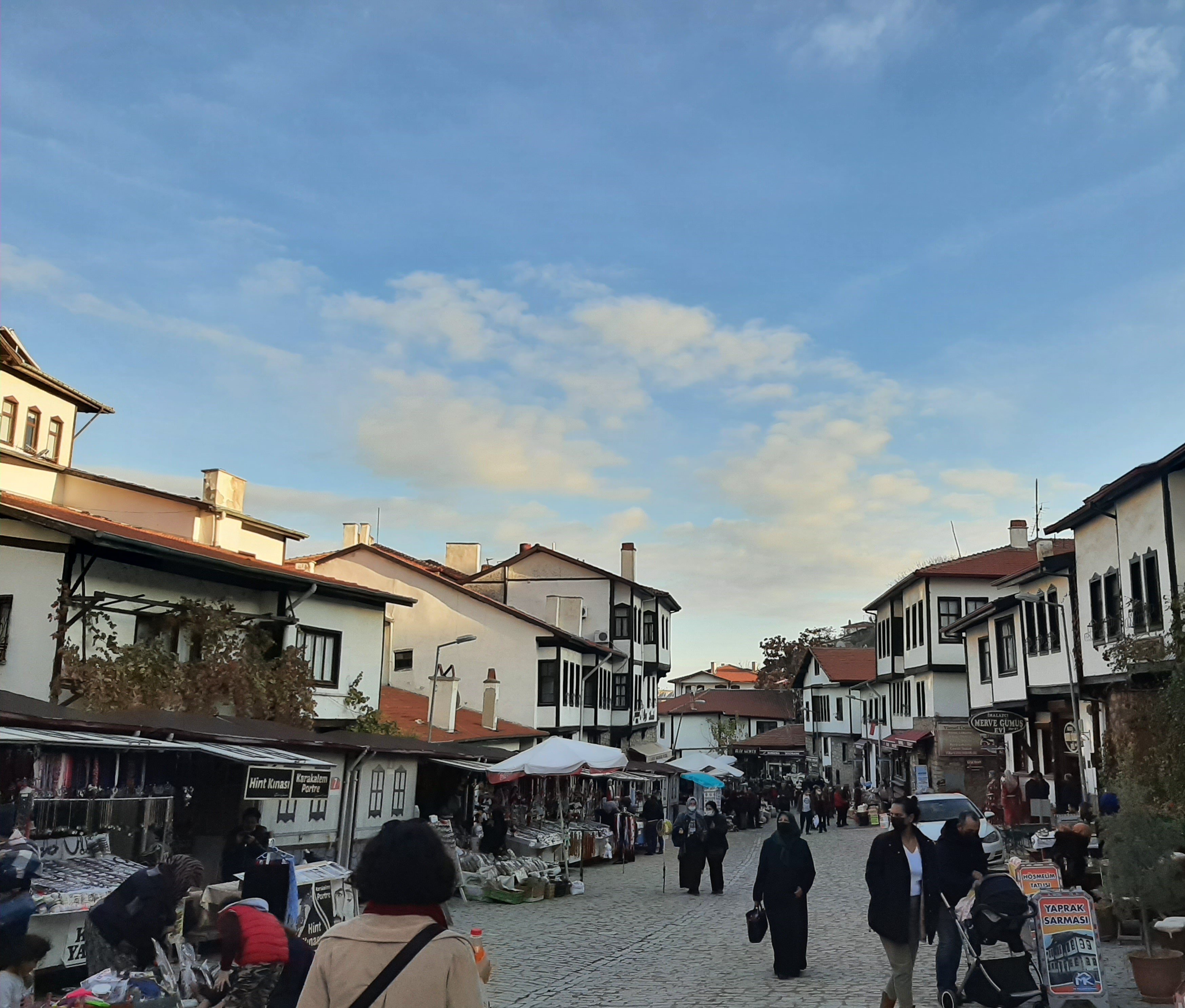 Akşam güneşiyle çarşıda son bir tur atarken kendimize ve eşe dosta mis gibi tereyağı kokan Beypazarı kurusu, Beypazarı baklavası, Beypazarı sarması ve havuçlu lokum alıyoruz. Aldıklarımızı pansiyondaki kral dairemize bırakıp biraz dinlenelim, 7’ye doğru akşam yemeği için tekrar çıkarız diye kararlaştırıyoruz. Lakin hava karardıktan sonra tekrar çıktığımız sokaklarda in cin top oynuyor. Okutan Konağında yemek yemek istiyoruz, kapanmış. Suluhan’da çay içelim diyoruz, kapanmış. İnternetten birkaç yer buluyoruz, hepsi kapalı. Açık bulduğumuz tek yerdeki garson, pandemiden sonra ilçede hayatının hava kararınca bittiğini, burasının da 8 gibi kapanacağını söylüyor. Şaşkınlıkla ve hızla yemek yiyip kalkıyoruz. Anadolu’da çoktan soğuk kış geceleri başlamış. Fazla dolaşmadan odamıza dönüyoruz.