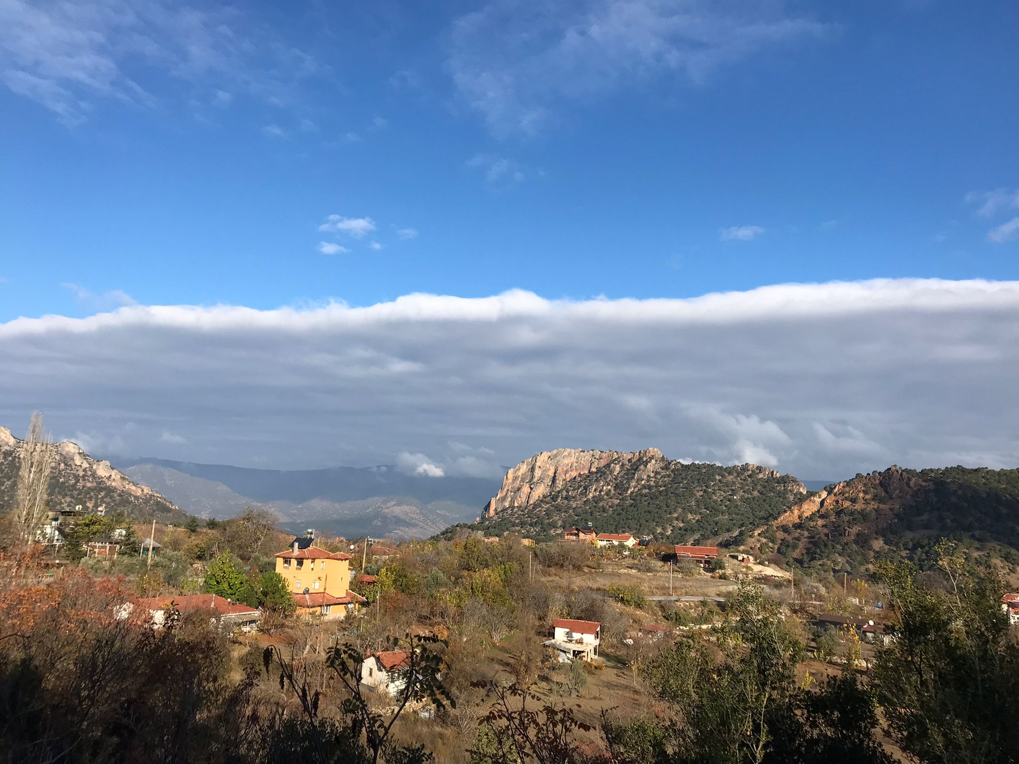 Sarıcakaya ilçesine ‘’Eskişehir’in Akdeniz’i’’ deniyor mesela. Bozdağların arasında bir kuytuda kalmış, sıcaklığı hep şehir merkezinden biraz daha fazla. Toprağı verimli, seracılık da yapılıyor ve şehir pazarından ya da belediye kooperatifinden aldığım pek çok ürün Sarıcakaya’dan geliyor. Böyle günlük, pratik bilgilerle, tek şeritli ve virajlı bir yoldan sonbaharın renklerine bakarak gittikçe küçülen özgür dünyalarımıza seviniyoruz işte o sabah. Beğendiğimiz bir köşede durup tepeli bir manzarada ‘’Bir Zamanlar Anadolu’da’’ temalı fotoğraflar çekiliyoruz hatta. 🙂 Yolda olmak güzel!