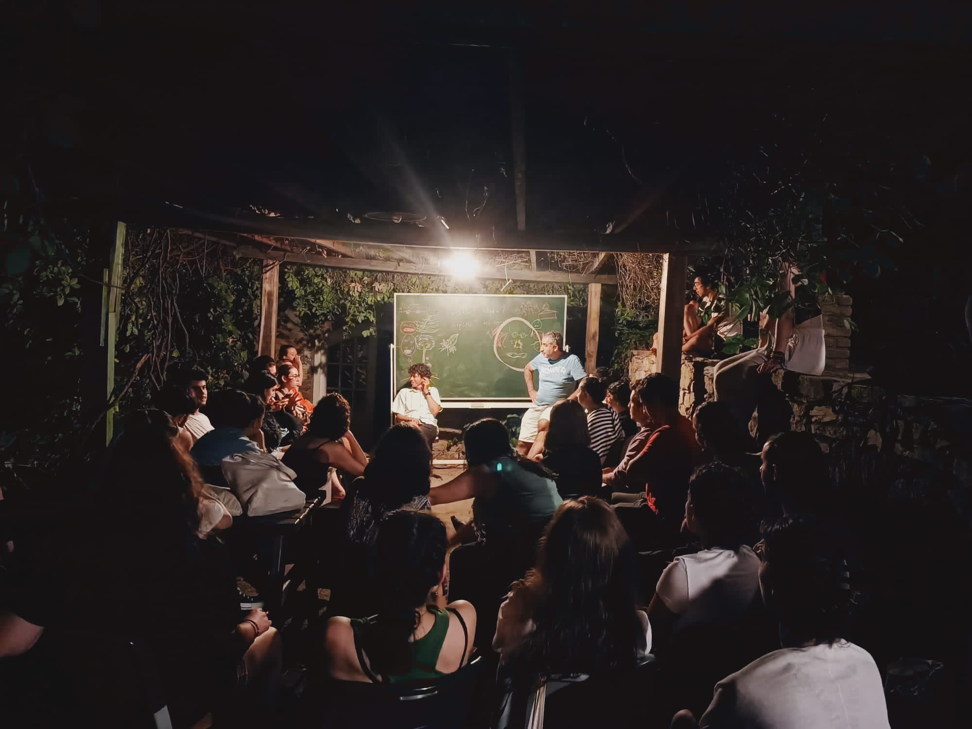 Alıştığımız okul derslerinin aksine, bizim programda hocalar birbirlerinin derslerine de katıldı, düşündürücü sorular sordu, katkılar sundu. Bazı akşamlar yemekten sonra gündüz anlatılanlara dair belgeseller izleyip üzerine konuştuk yine hep birlikte, yine bildiğimiz öğretmen-öğrenci ciddiyetinin aksine; komikliklerle, şakalarla, kendiliğinden oluşuveren renkli bir samimiyetle.