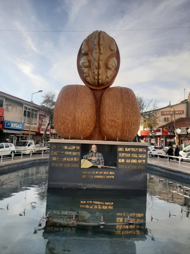 2 Aralık Cumartesi sabahı saat 09.30 civarı, Kırşehir’in Kaman ilçesindeyiz. Sokaklarda güne başlayan esnaftan, halk pazarına erzak götüren birkaç pazarcıdan, köpeklerden ve Ankara’dan kalkıp gelmiş bizden başka kimse yok. Ben birkaç hafta önce yine haritayı açtım, arabayla gidilebilecek ve daha önce görmediğim Anadolu rotalarına baktım, Nevşehir’in Hacıbektaş ilçesinin 230 km uzağımızda olduğunu gördüm ve Gölbaşı’ndan çıkıp, Kaman’dan geçip Kırşehir’den devam etmeli bir rotayı, birlikte keşfetmeye en uygun bulduğum Müzik Köylü arkadaşlarım Ali ile Utku’ya sundum. Bendekine benzer bir heyecanla kabul ettiler, yola düştük. Şimdi sabahın bu vaktinde, ‘Kam’aan’ şakası eşliğinde, Kaman’dan ceviz almak dışında yapılacaklar: Ceviz heykelinin ve Neşet Ertaş’lı hatıra duvarının önünde fotoğraf çekilip yola devam etmek. Ceviz heykeli tamam. Duvarın önüne gelince ise Utku ‘bir fotoğraf çekebilir misiniz?’ diyerek telefonunu oradan geçmekte olan Kamanlı bir kadına uzattı. Kadın fotoğrafın kendisiyle çekileceğini sanıp ‘Niye ki? Yok. Ben artist miyim?’ diye mırıldanarak kaçtı. Öyleyse selfie! 🙂