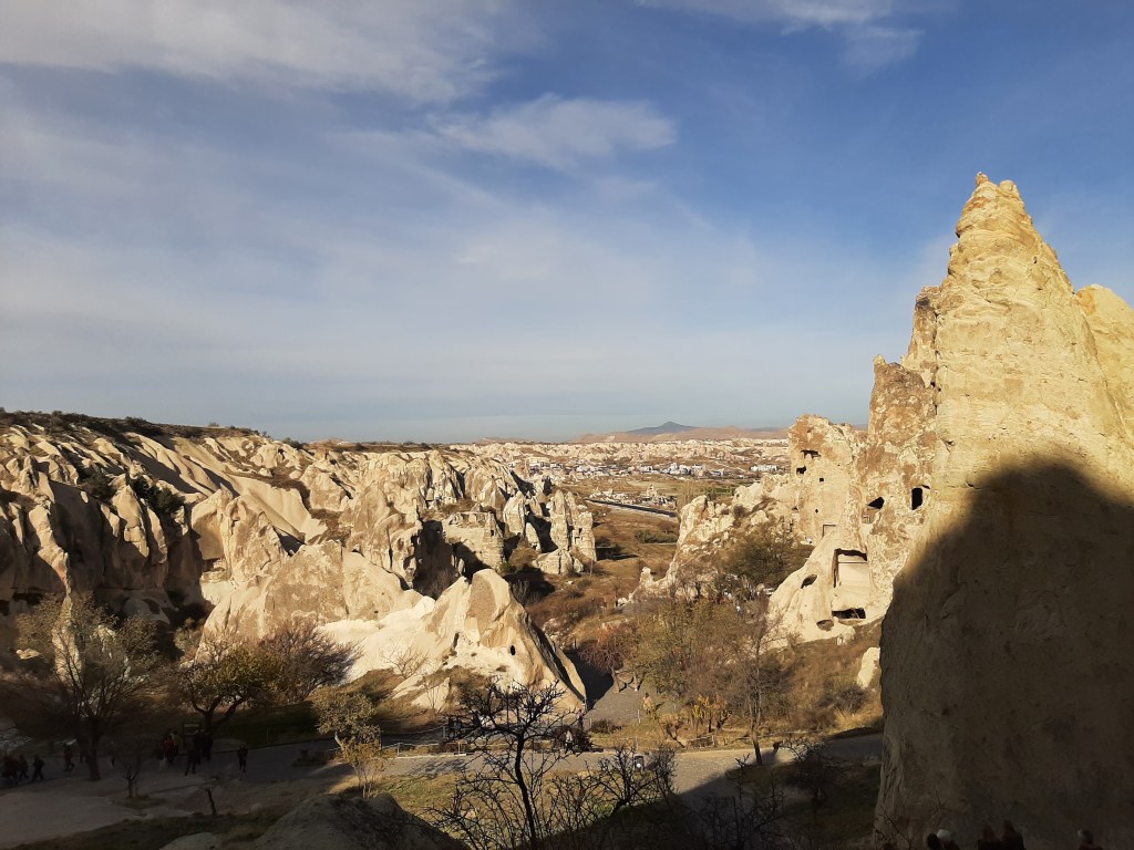 Akabinde; güneş batarken Nevşehir’in merkezinden geçip Kocabağ’da şarap tatmamız ve almamız, Göreme’de kalacağımız oteli bulup çantalarımızı odaya bıraktıktan sonra yemeğe çıkmamız, yemeğin ardından otelin kafeteryasındaki şaraplı sohbetimiz…