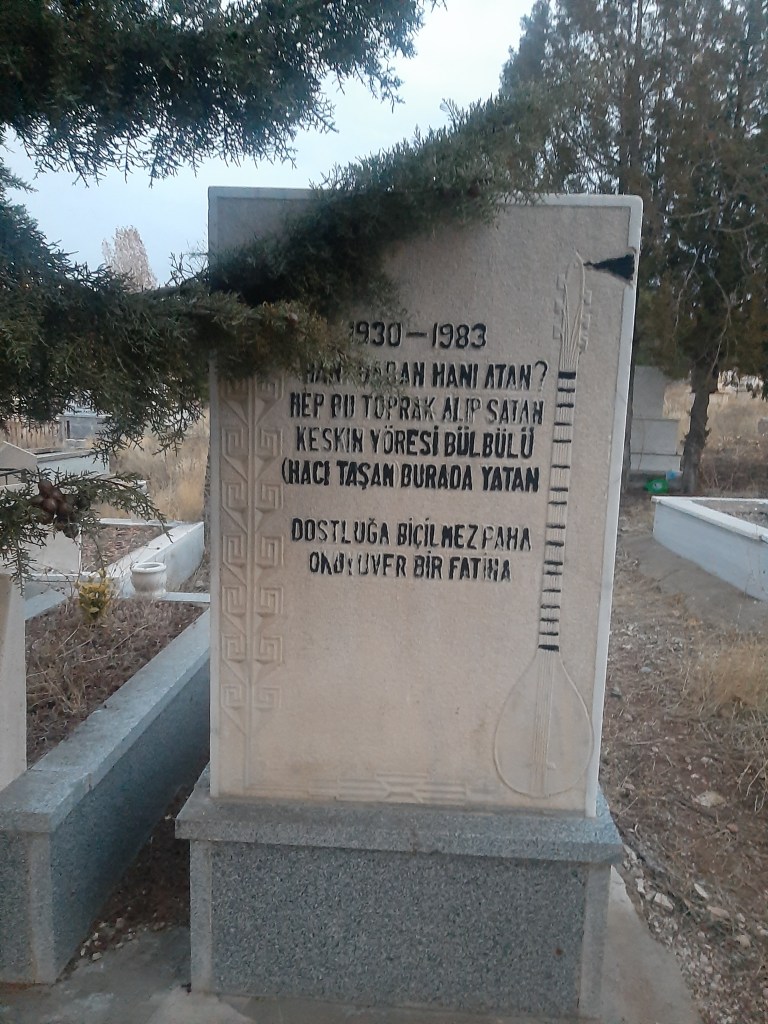 Pazar sabahı kahvaltıdan sonra Göreme ve Zelve Açıkhava Müzelerini gezdik. Kapadokya Bölgesinin bu tarafını üçümüz de daha önce gezmemişiz. Kayaların arasına oyulmuş yerleşim yerlerinden bazılarının içindeki renkli tavanlı bin yıllık kiliseler ve doğanın mirası şekiller ne ilginç, ne tatlı! Uçhisar’daki öğle yemeğinden sonra Kırıkkale-Keskin üzerinden Ankara yoluna saptık. Keskin’de Hacı Taşan’ın mezarını da aradık, bulduk. Muharrem Ertaş’ın talebesi, bu coğrafyanın başka bir abdalı, derleyicisi. ‘’Bugün ayın ışığı, elinde bal kaşığı’’ türküsüyle bildiğim, sesi yoldaşımız olan Hacı Taşan.