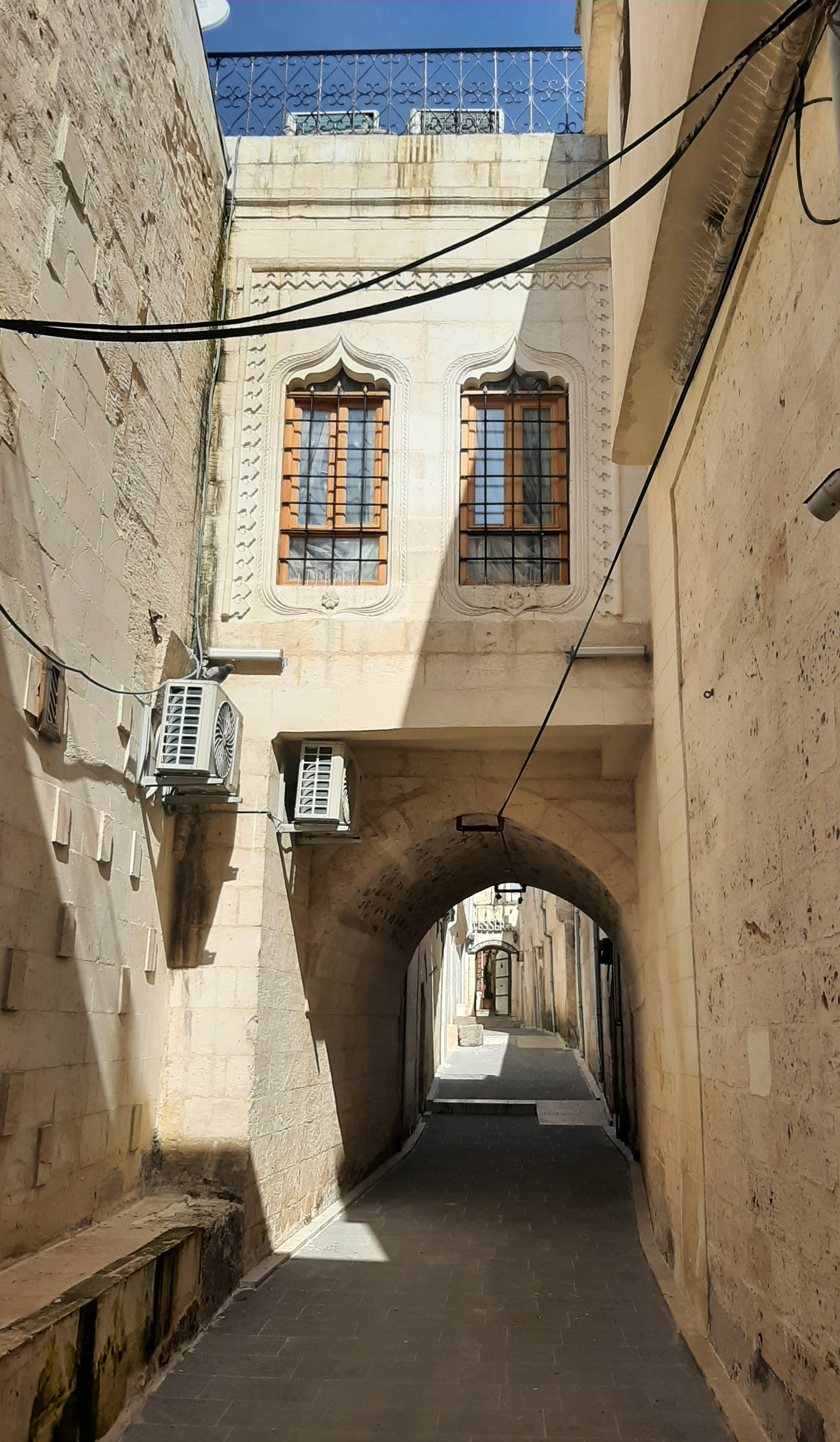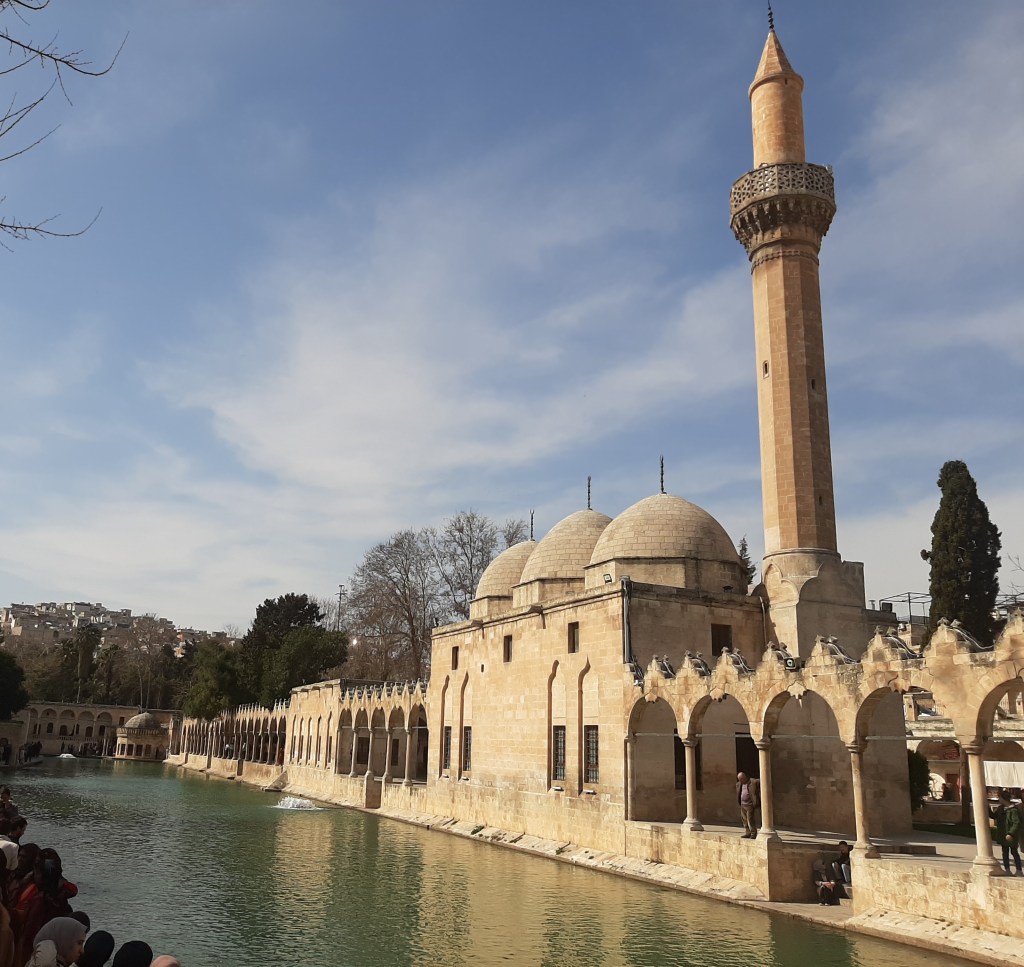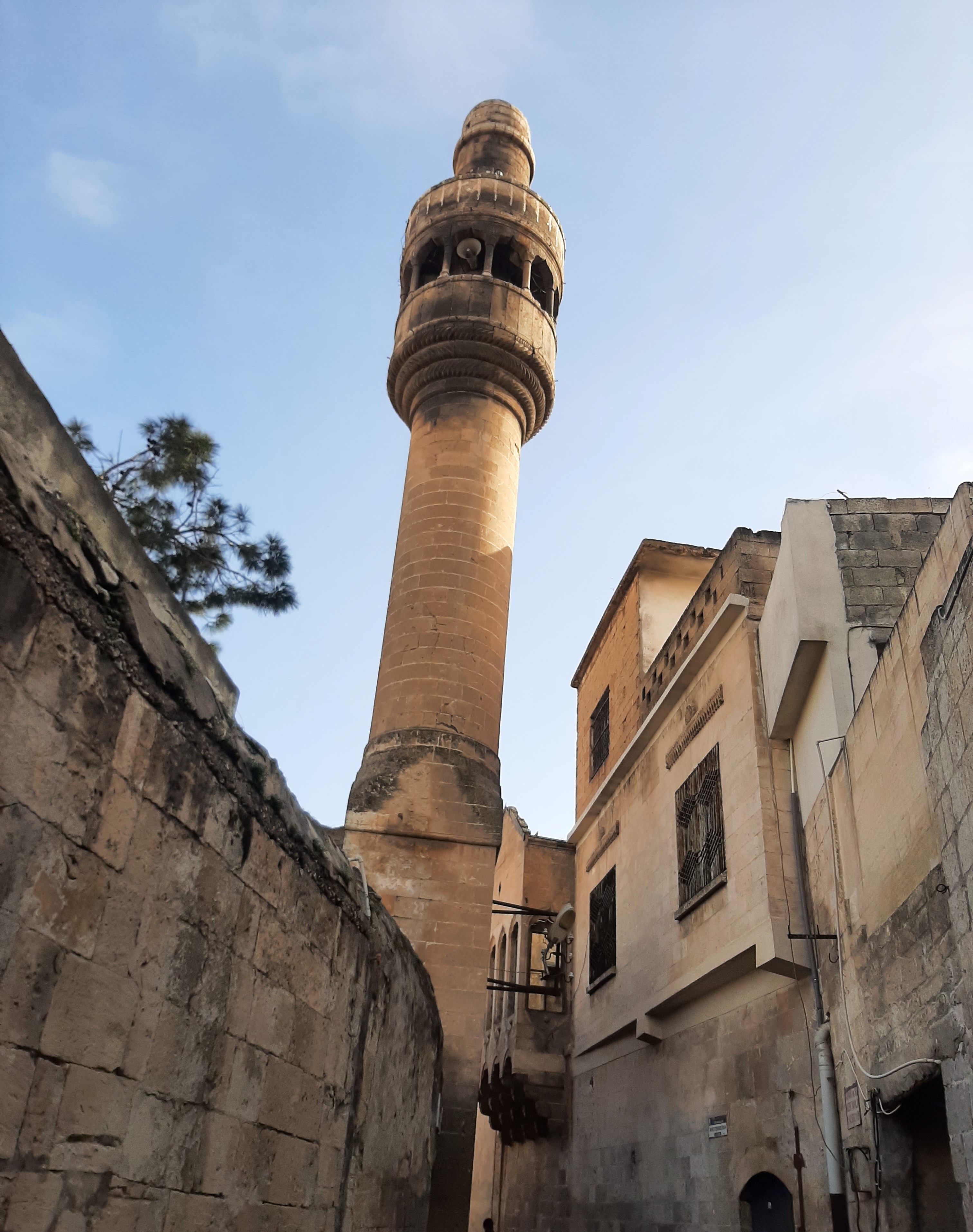 Gümrük Han 1500’lerde, Osmanlı zamanında yapılmış bir kervansaray. İçinde kebapçılar, kahvehaneler var. Çok acıktığımızdan birer buçuk porsiyon ciğeri anında tertemiz ettik ve galiba lezzet turumuzu bu ciğer ile en yüksek noktadan başlatmış olduk. Sonra kahve içmek için yine handa bir kafeye oturduk. Urfa’nın şehir merkezini on yıl önce birkaç saatliğine görmüştüm. İstanbul’dan Antep niyetiyle çıktığımız bir hafta sonu, arkadaşlarım iki evli çift ile Halfeti, Birecik ve Göbeklitepe’ye kadar gelmişken merkeze de uğrayıp koşa koşa Balıklıgöl’ü, Hz. İbrahim’in doğduğu mağarayı ve Hz. Eyüp’ün sabır makamını görmüş, dürüm yemiş ve kötü bir sıra gecesi deneyimi ile ayrılmıştım.* Şimdi daha geniş ve mutlu bir zamanımda, yeniden tanıştım şehirle. Beyaz kesme kalker taşlı, yaşlansa bile hala çok güzel, çıkmalı (cumbalı) yapıları var; Diyarbakır, Mardin gibi dar sokaklarla birbirine bağlanmış.