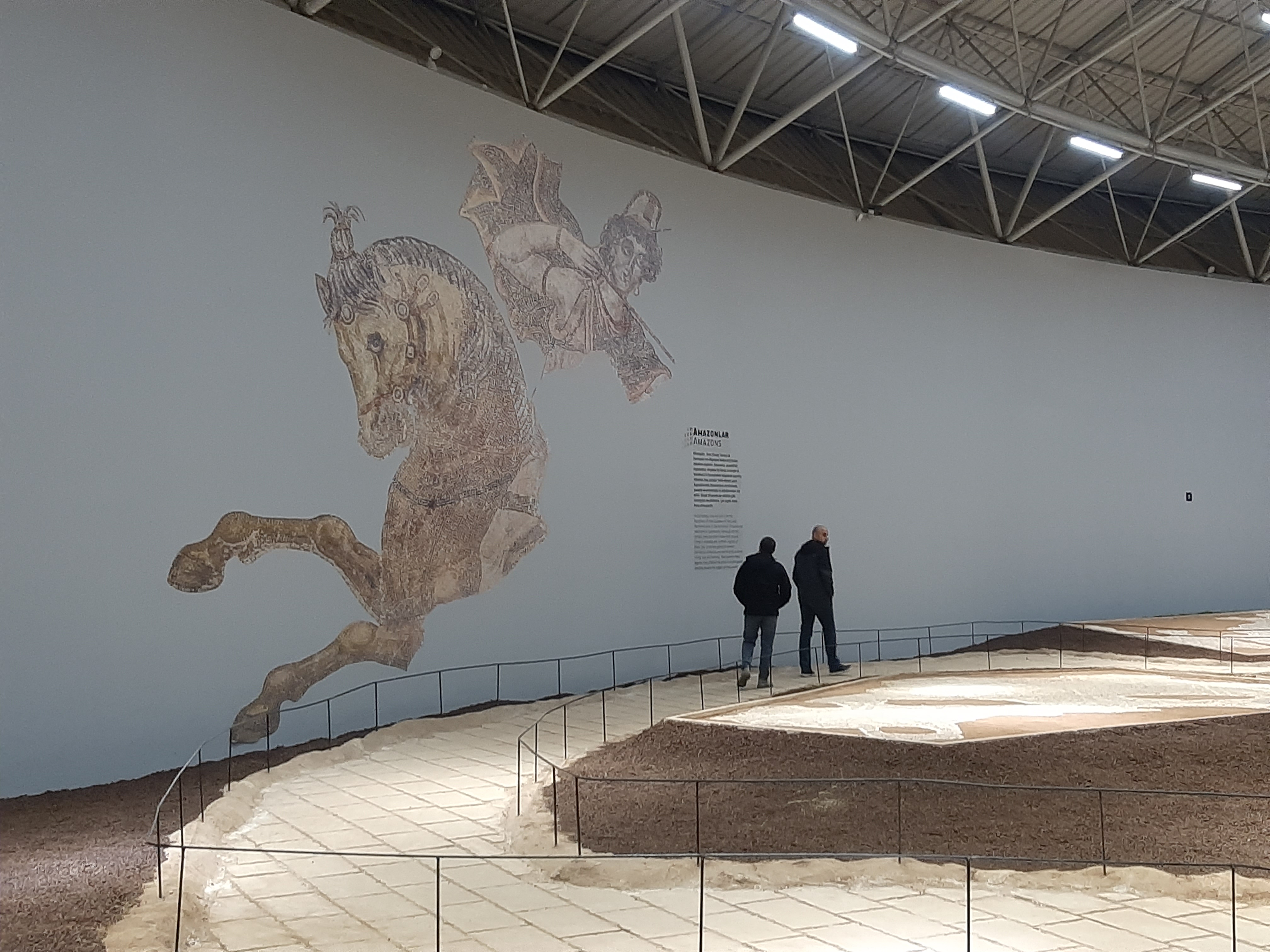 Gezmeye yine Balıklıgöl ile başladık. Görmediğim on yılda Urfa daha turistik, esnafı daha turist sever (!) olmuş. Israrla tarihi bilgi vermek isteyen bir adam peşimize takıldı. Hızlıca geçip Haleplibahçe Mozaik Müzesine gitmeye karar verdik. Urfa civarındaki kazılarda keşfedilen, MS 5.-6. yüzyıllarda yaşamış Doğu Roma İmparatorluğu’nun bürokratlarından birine ait olduğu düşünülen bir villadan çıkarılan (Amazonlar Villası) taban mozaikleri burada sergileniyor. Mozaik Müzesi ile aynı bahçe içinde Şanlıurfa Arkeoloji Müzesi var. Göbeklitepe’den başlayıp kentin geçmişini salon salon anlatan kocaman bir müze. Müzelerin bulunduğu bu geniş kompleks 2015’te açılmış. Eski şehrin ortasında, Şehitlik Mevkiinde, 1500 m2’lik bir alana, etrafında ufak tefek mağaraların olduğu bir araziye yayılmış. Arkeoloji Müzesi çıkışında, Urfa’da yaşayan Müzik Köylü arkadaşımız Sultan da bize katıldı. Yirmi iki yaşındaki Sultan, bu mağaralarda yakına kadar insanların yaşadığını hatırlıyor. İbrahim Tatlıses’in doğduğu mağara da bunlardan biri galiba. 🙂 Mağarasına değil ama o dar sokaklardan geçerek İbrahim Tatlıses Müzik Müzesi’ne vardık.