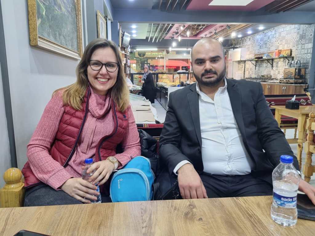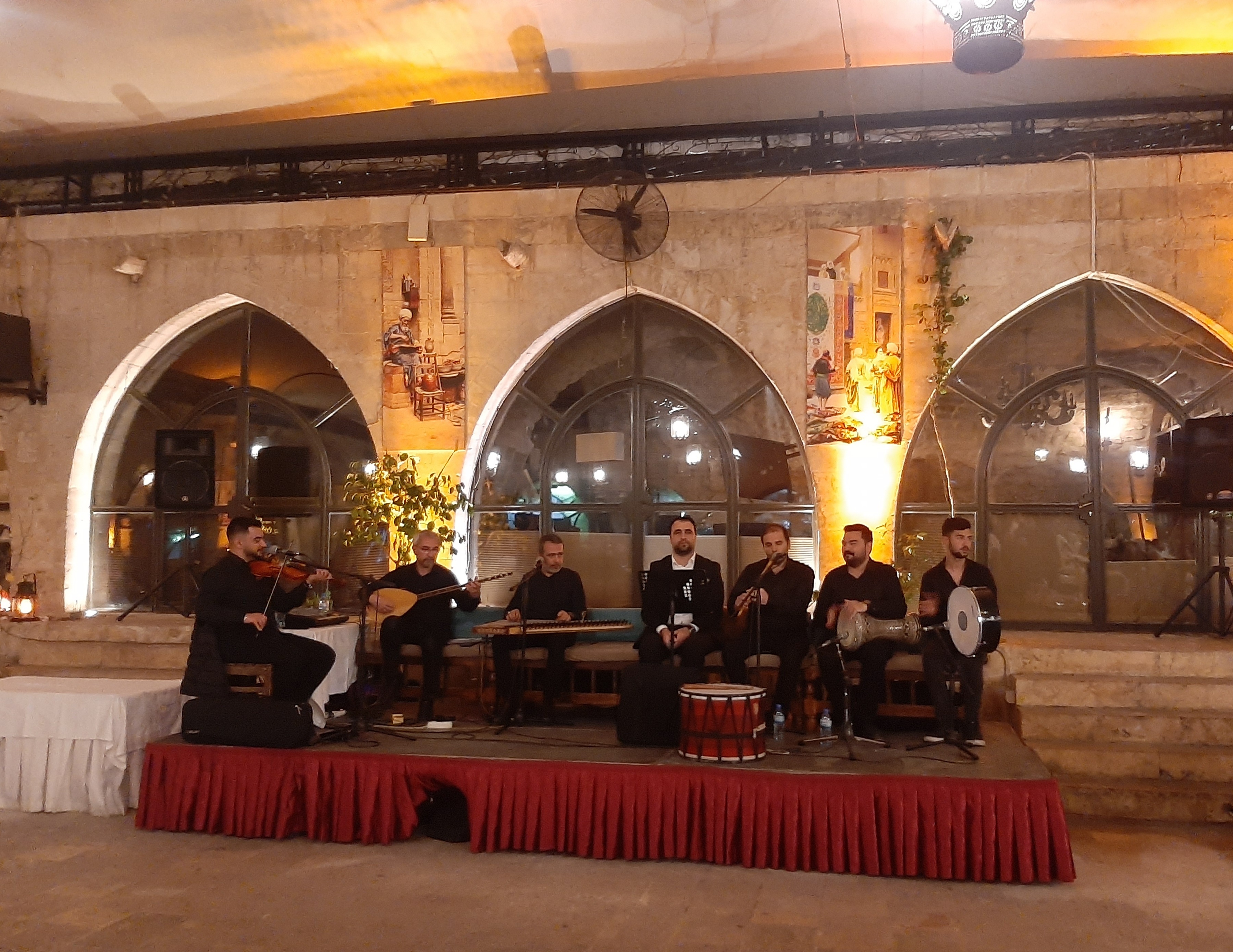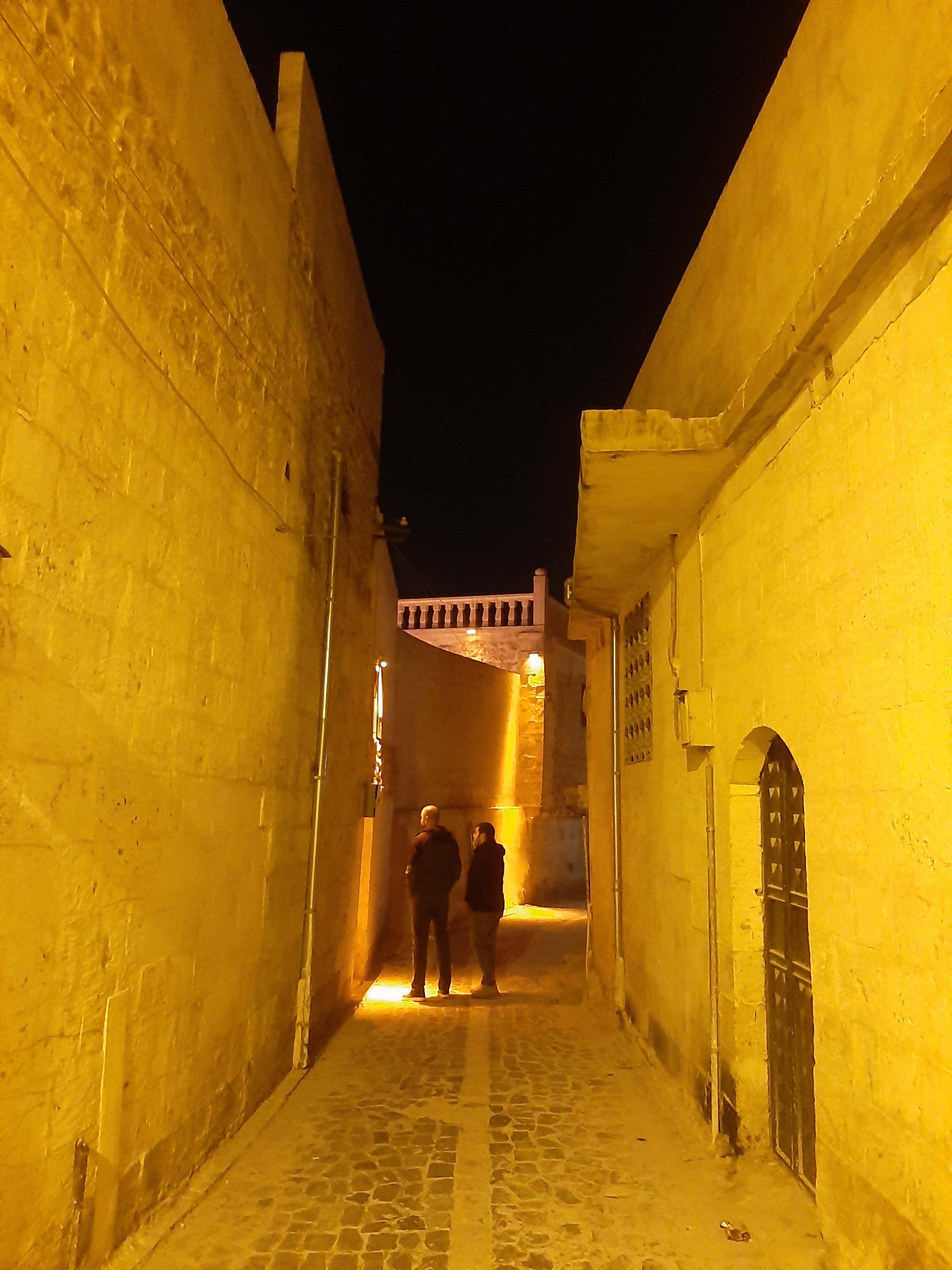 Harran’dan merkeze varınca Vedat Milörümüzün önceden araştırdığı havalı bir restoranda lahmacun yedik. Sıra gecesi rezervasyonu yaptırdığımız hana geçmeden, birkaç hafta önce Urfa’ya taşınmış, kışın Ankara’da birlikte ut çalıştığım Kerem Hocamla buluşup çay içtik. Genç hocam Urfa’ya yeni açılan bir mevlevihaneye kadrolu udi olarak gitti. Yerel müziğin keşfinde ve içinde olmak, icraya dair daha fazla bir şeyler yapmak istiyordu. Bence Urfa civarı tam onun yeri. Birlikte çalıştığı Urfalı hanendelerin bir kaç oktavlık tiz seslerini ve kendi aralarında yaptıkları sıra gecelerini anlattı.