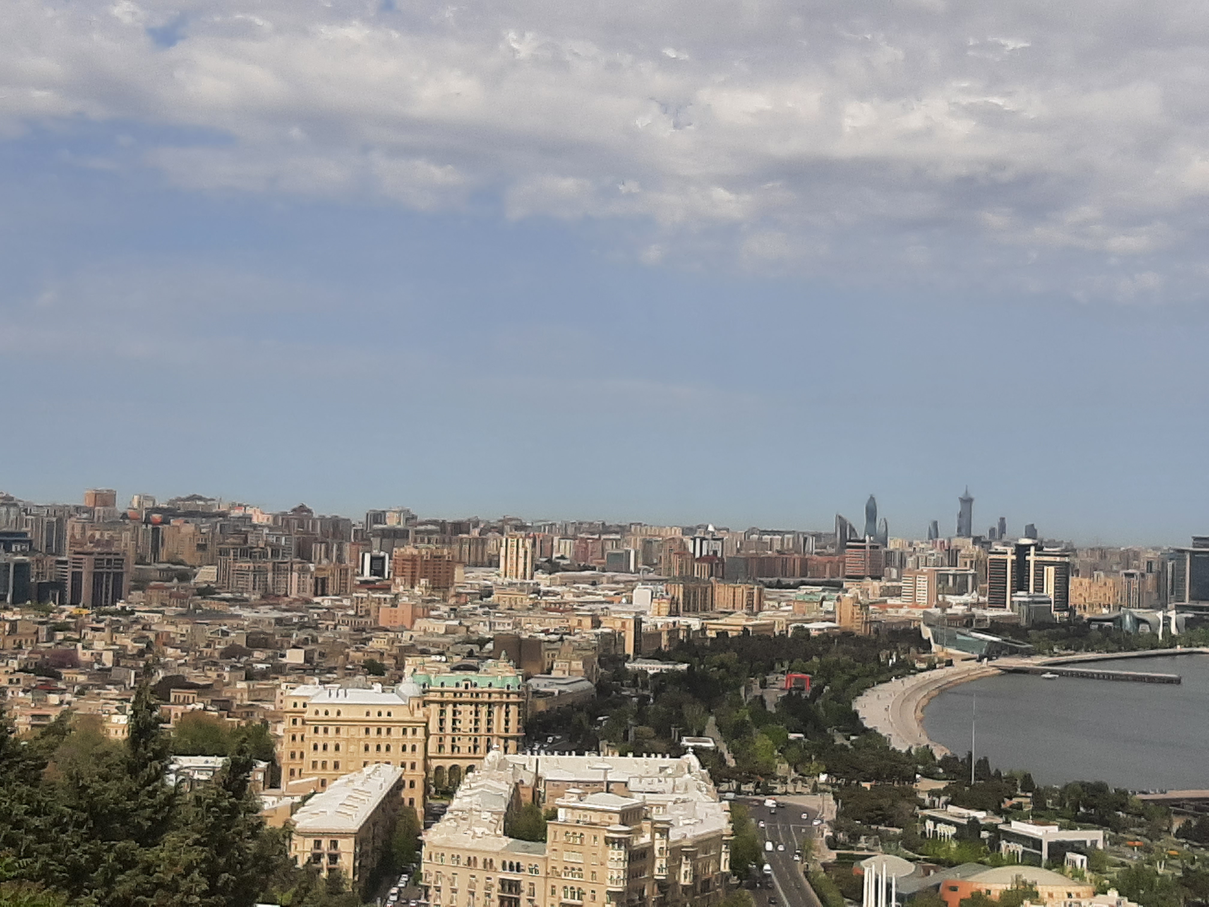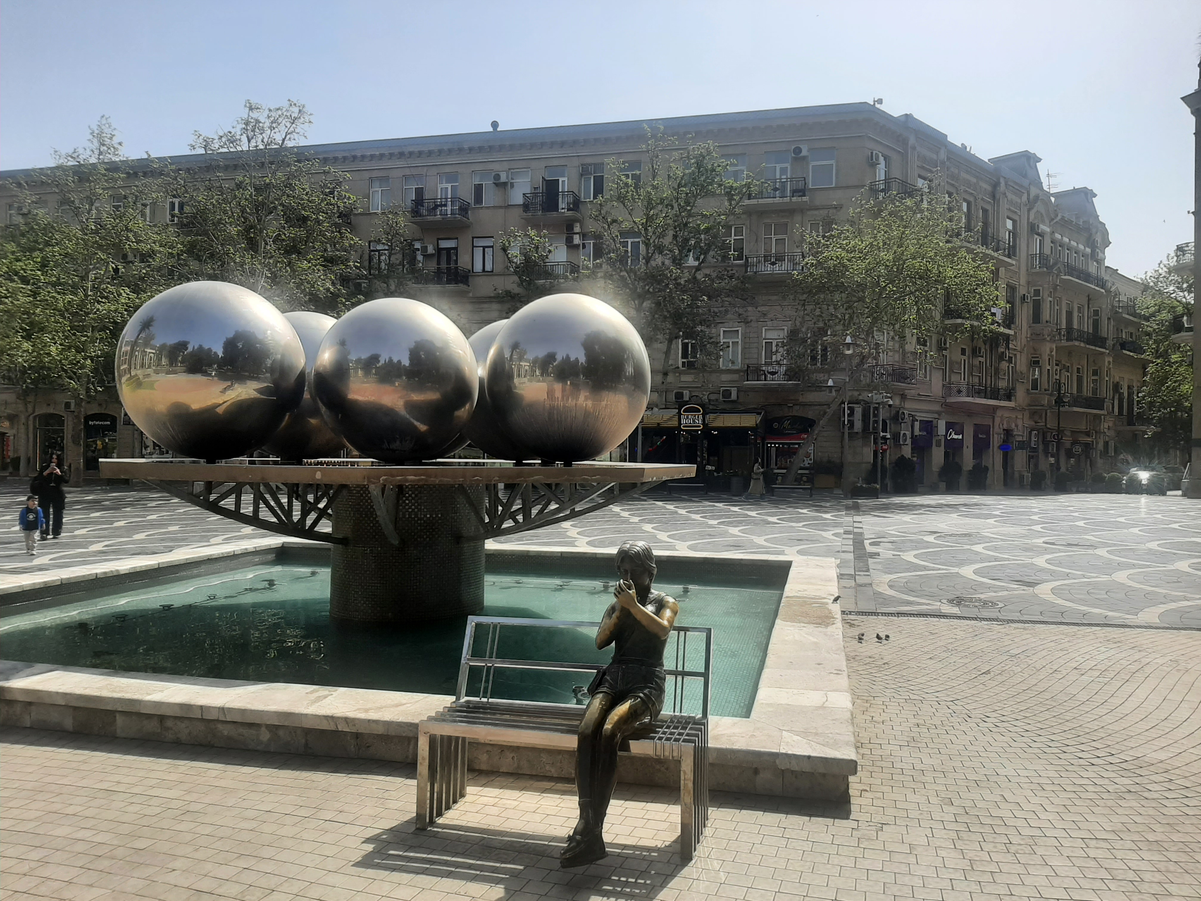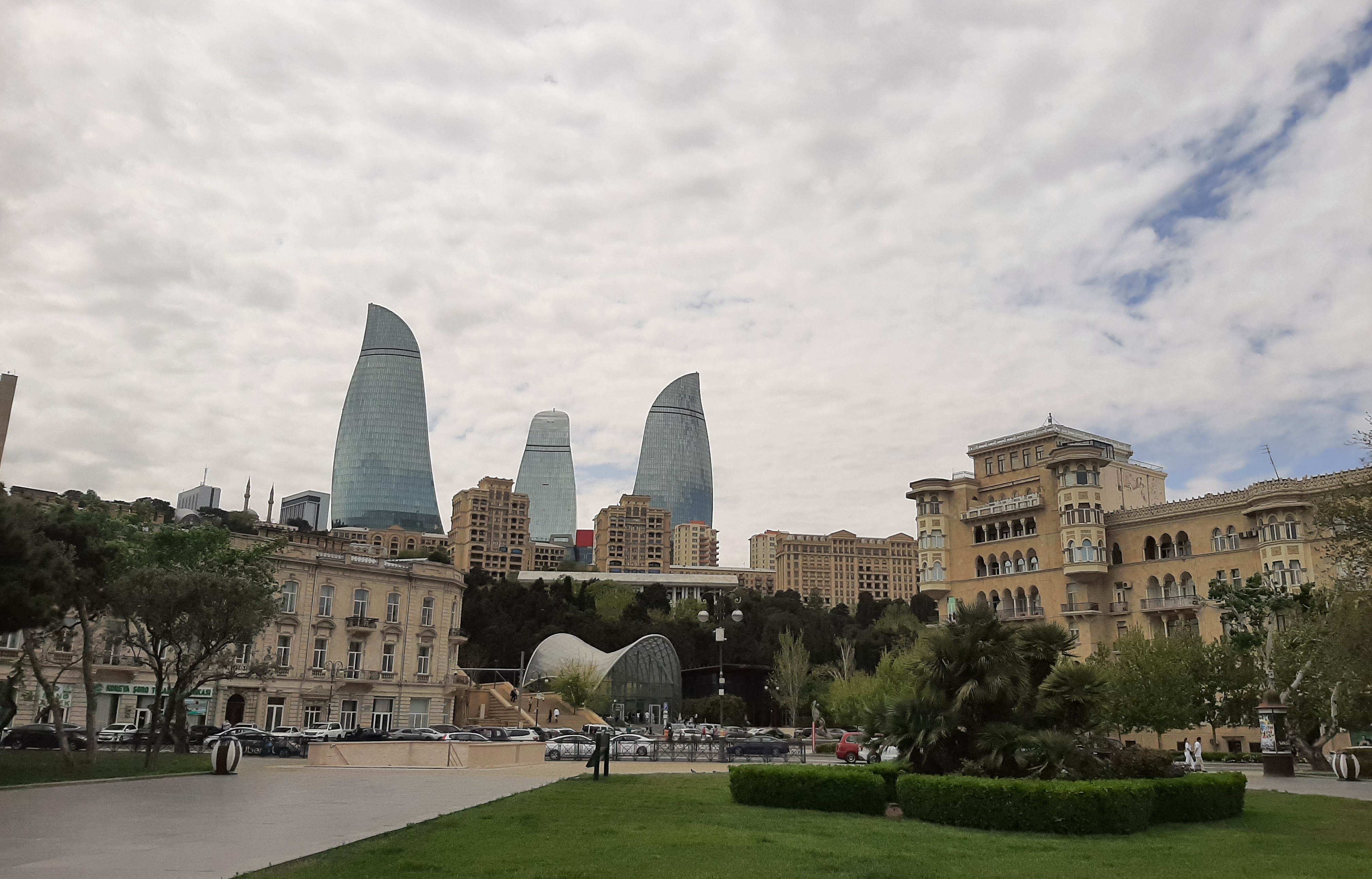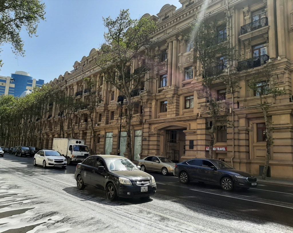 20 Nisan cumartesi sabaha karşı Haydar Aliyev Havaalanına indim, merkezdeki hostelime, paylaşımlı odama vardım, iki saat uyudum, uyanınca oda arkadaşlarımla tanıştım, toparlandım, dışarı çıktım. Şansıma Bakü’ye bahar çoktan gelmişti, hafif bir rüzgara rağmen tepede pırıl pırıl güneş vardı. Yollar, caddeler Moskova gibi devasa büyük; sekiz, on şeritliydi ve hostelimin bulunduğu Zarife Aliyev Küçesine (Caddesine) bir yerlerden köpüklü su akıyordu. ”Küçelere su serpmişem” diye ıslığa başladım. Sonra dört gün boyunca mahnıdan mahnıya (şarkıdan şarkıya) dolaşan ıslığım hiç susmadı. 🙂