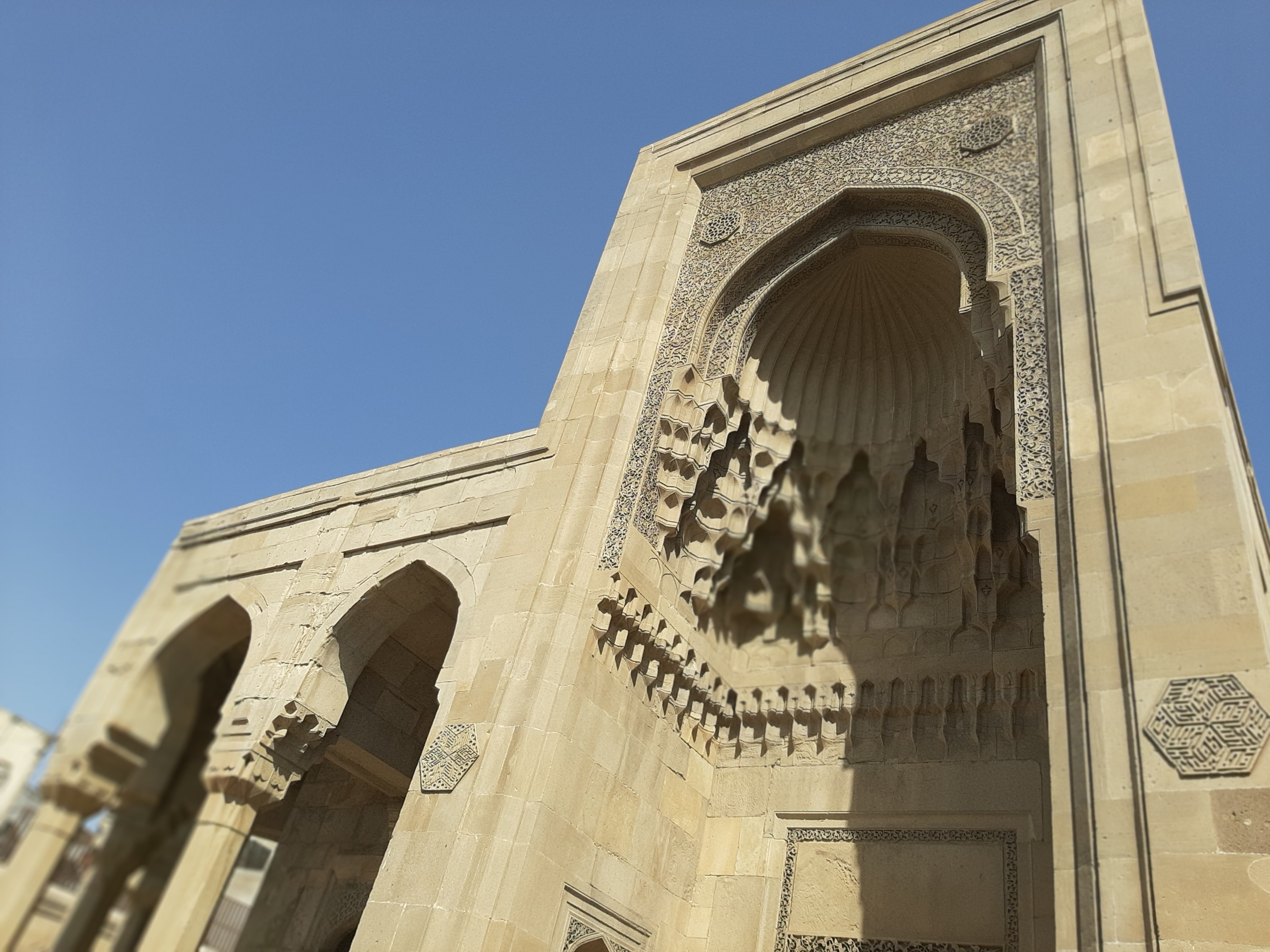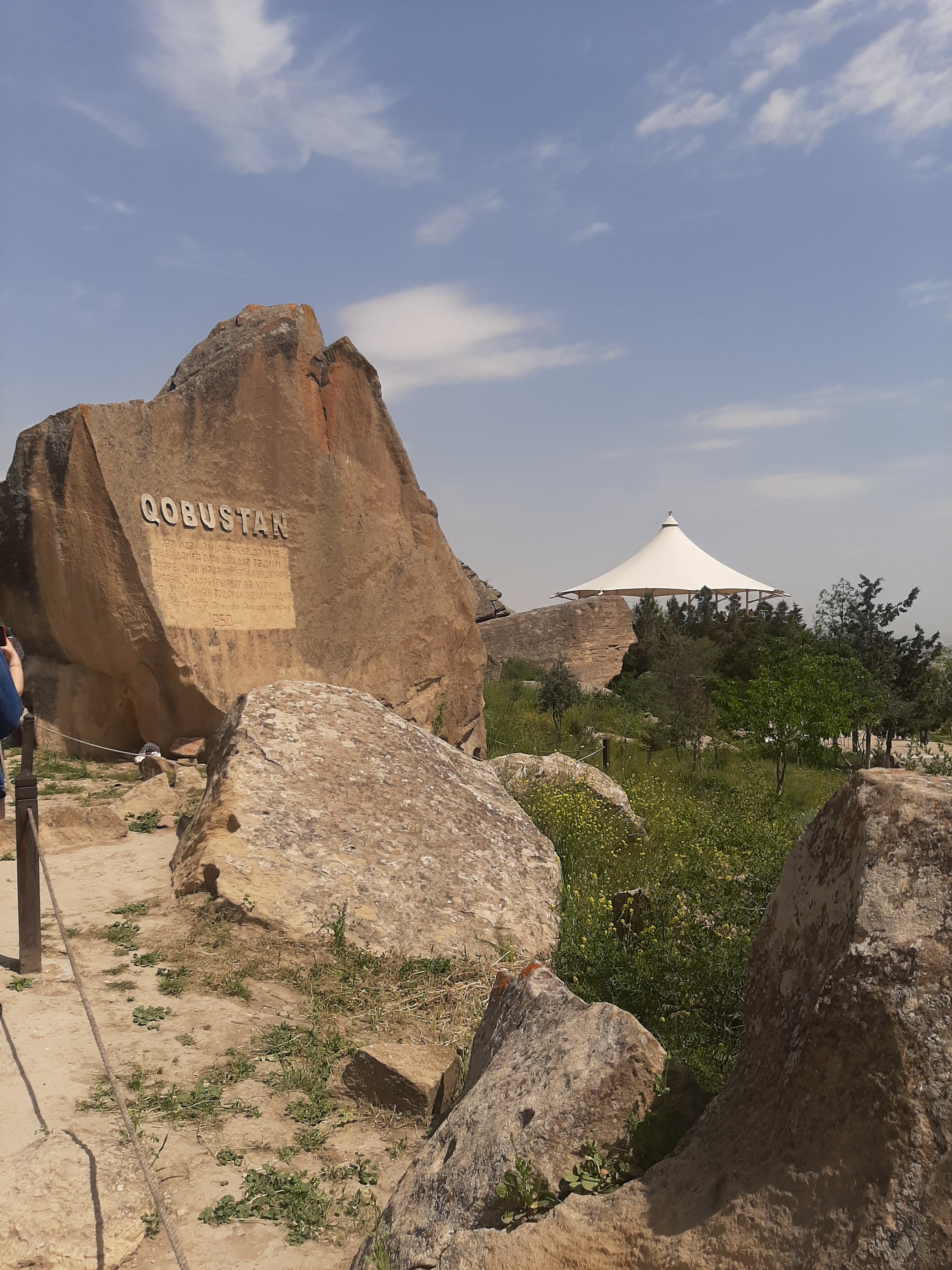 Oradan Gobustan Kasabasına geçtik. ‘Gobu’ (kobu) dağ geçidi anlamına geliyormuş ve M.Ö. 50.000’lere ait, bölgenin ilk yerleşim yeri olduğu tespit edilen bölge Milli Park ilan edilmiş. Azerbaycan’ın Çatalhöyük’ü yani. Taşların üzerinde hala binlerce yıl öncesinin avlanma figürleri var. Bir de dans eden insanlara dair çizimler! ‘Gavaltaş’ dedikleri ve hala bir kısmından melodik bir tınlama çıkan eski bir perküsyon aleti de hala orada. Devamında Hazar Denizine nazır Bibi Heybet Camii’ne uğradık. Dört gün boyunca geçtiğim yollarda dört tane cami görmedim galiba! Bibi Heybet Camii 13.yy’de Şirvanşah Sultanı tarafından yaptırılmış, Sovyet Döneminde yıkılmış, yirmi yıl önce Haydar Aliyev aynı yerde, aslına uygun şekilde yeniden inşa ettirmiş.