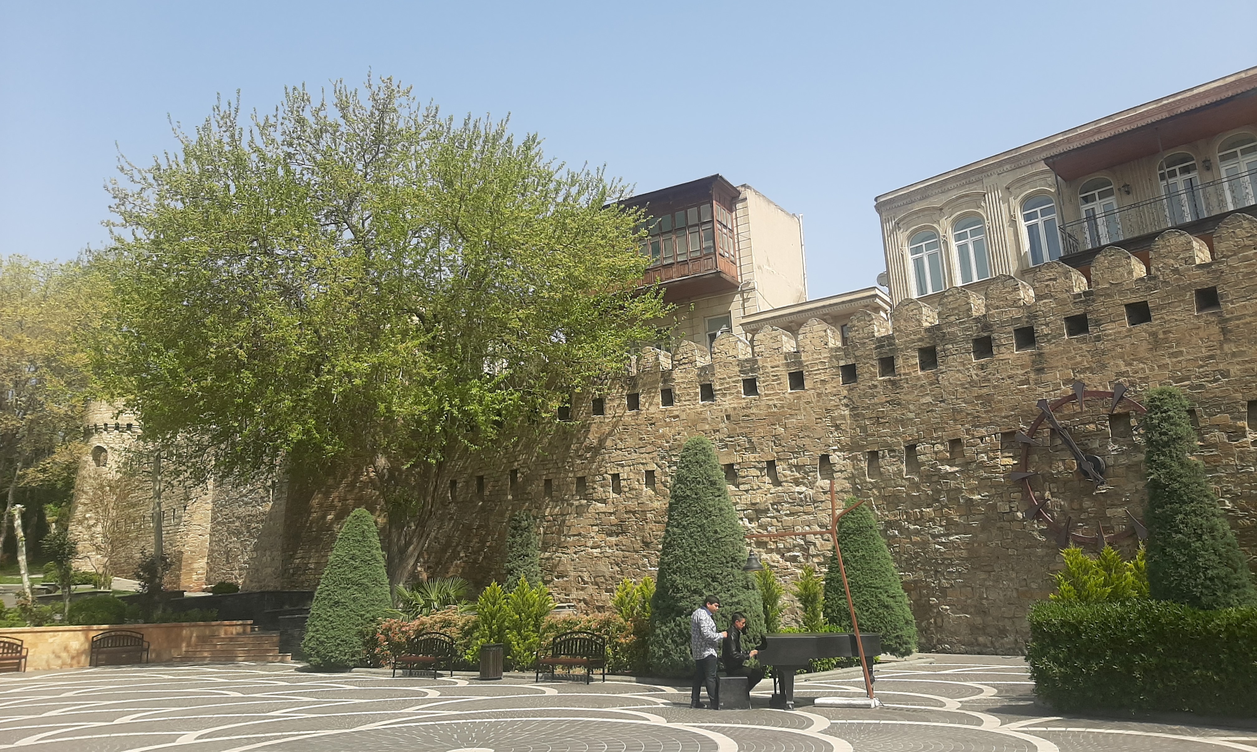 İlk gün Şirvanşahlar Sarayına giderken yolda Minyatür Kitap Müzesine rastladım. Cam dolapların içinde, Guiness Rekorlar Kitabına da girmiş miniklikte, dünyanın her dilinden kitaplar vardı. Türkiye’den Nutuk gözüme çarptı. Bir de Fazıl Hüsnü Dağlarca’nın bir şiir kitabı: ‘’Haydi’’. Saraydan çıktıktan sonra Filarmonya Bağı’nı buldum. Yani Devlet Filarmoni Orkestrası Binasının Bahçesi. Bu bahçeye bakan meydana bir piyano koymuşlar. Dört günümün dördünde de geçtiğim bu meydanda, her seferinde piyanonun başında farklı birilerini gördüm. Bakü halkının Sovyet Dönemi alışkanlıkları, Klasik Batı Müziğine, operaya, baleye ve tiyatroya düşkünlüğü hala devam ediyormuş. Ülkenin okuma-yazma oranı %99,5 imiş ve Okullarda hala Rusça ikinci anadil olarak öğretiliyormuş. Piyano çalmak da Allah’ın emri galiba onlar için. Ne güzel!