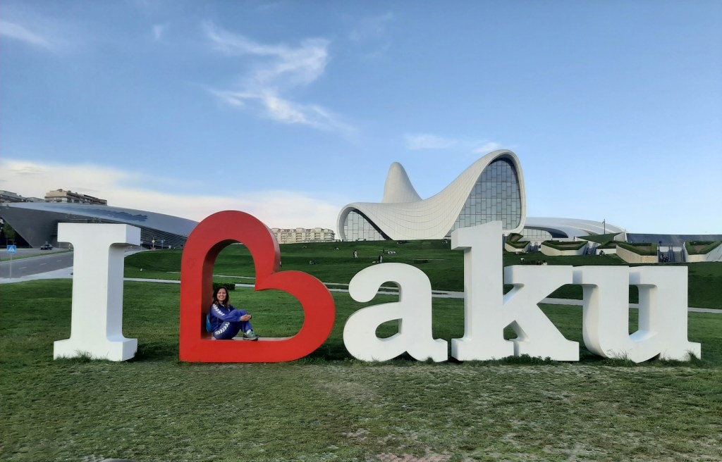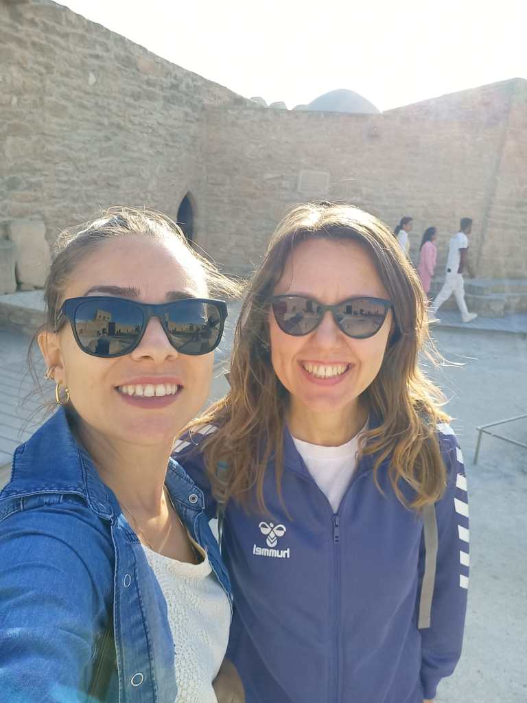 Tek başıma yola çıksam da yol bana yeni bir arkadaş kazandırdı: Tuba. O da İstanbul’dan tek başına gelmiş, gelmeden önce tıpkı benim gibi bir sürü Bakü videosu izlemiş. Meraklı, bıcır bıcır, girişken bir genç kadın. Haydar Aliyev Merkezine ikinci gün gitmemi o önerdi ve o da üçüncü gün benim önceden yazıldığım şehir dışı tura katılmaya karar verdi. Benden iki gün önce gelmişti, iki günlük demlenmiş bilgileri ve sohbeti bana çok iyi geldi.