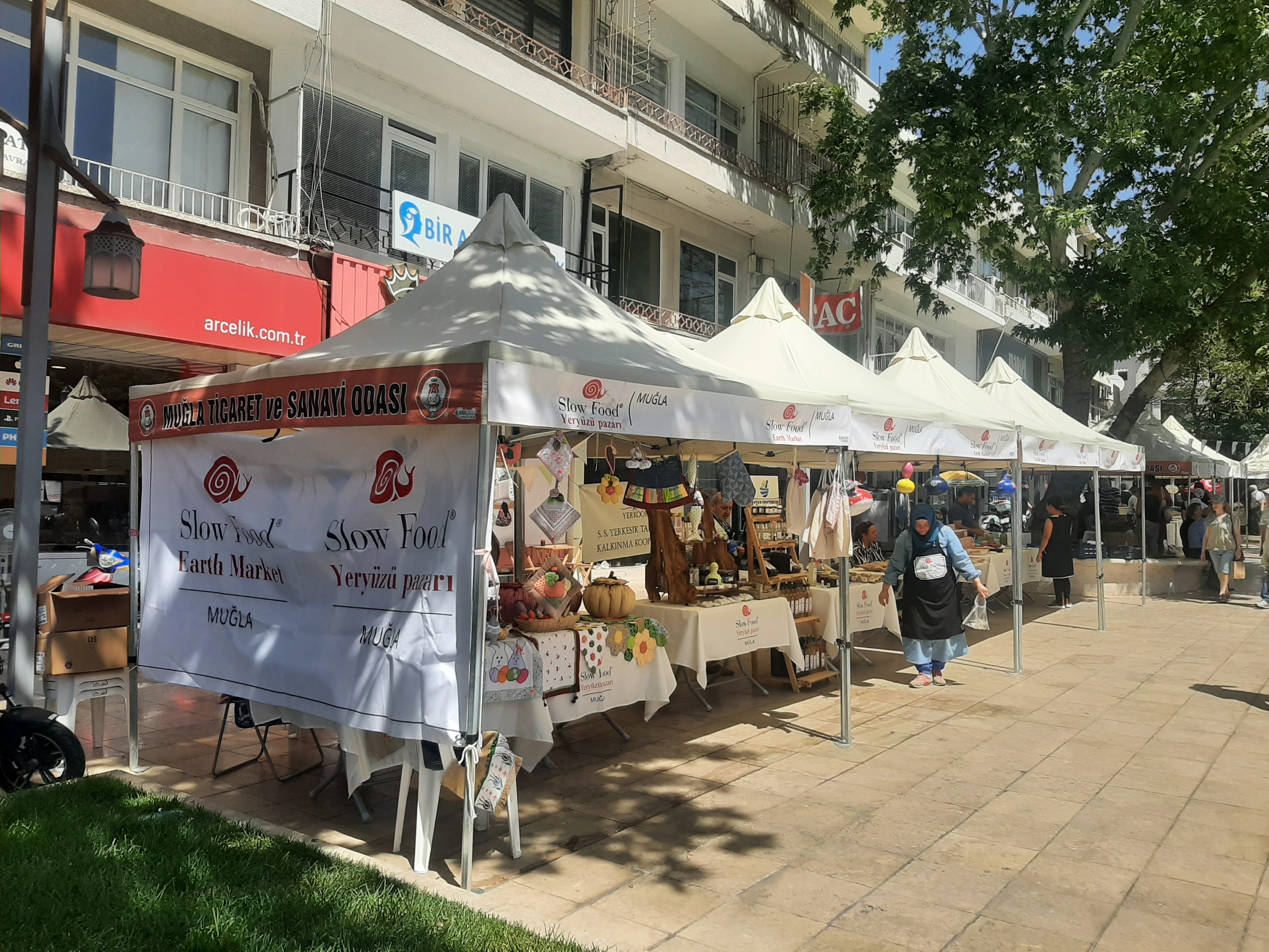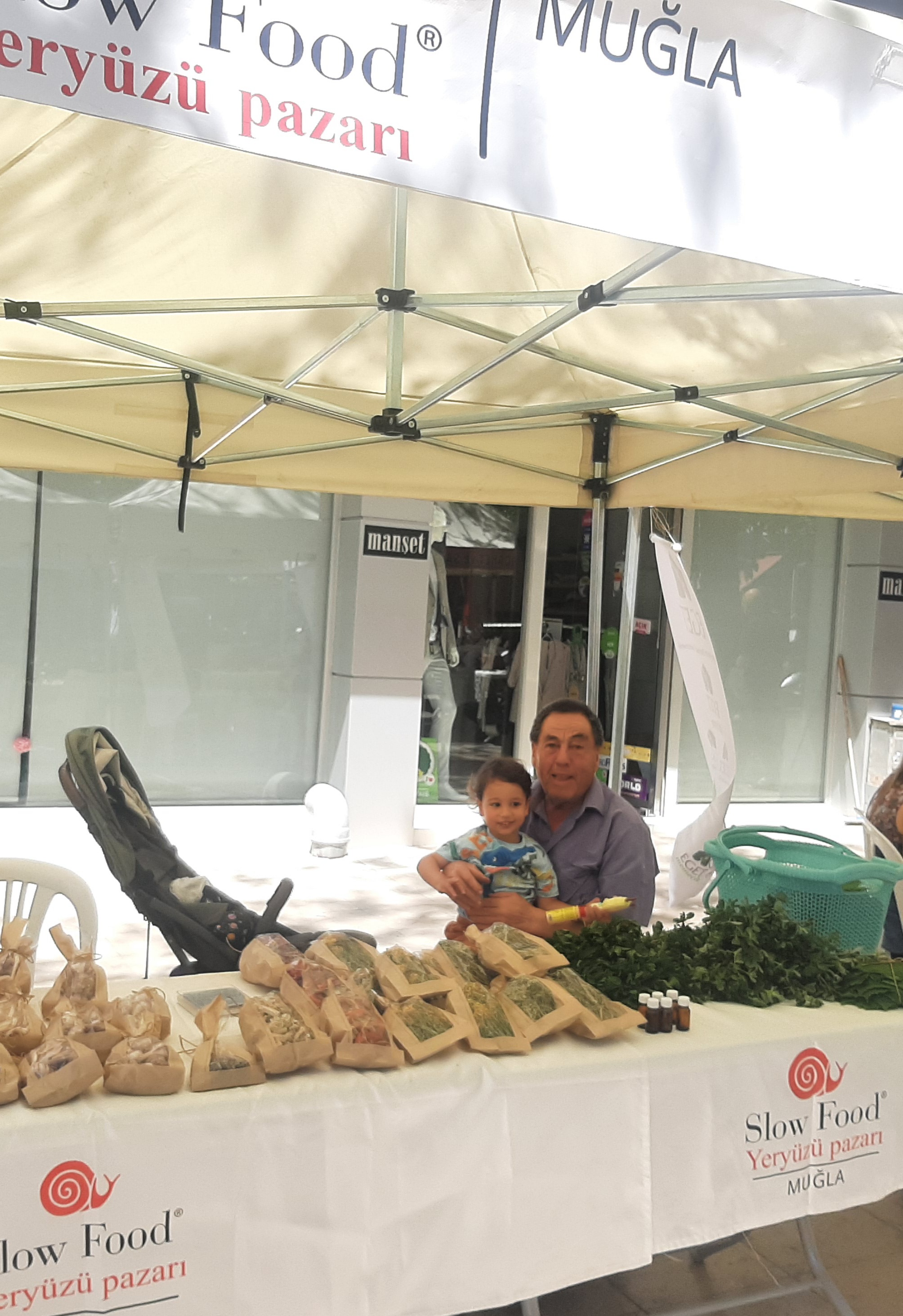Kahvaltıyı bitirip arabayla yeniden merkeze indik. Menteşe’nin İnsan Hakları Meydanında, ayda bir kez Slow Food Hareketini** desteklemek amacıyla Yeryüzü Pazarı kuruluyormuş. ‘Slow Food’ dünyanın birçok yerinde, herkese temiz, iyi ve adli gıda sağlamayı amaç edinen bir sivil toplum girişimi. Menteşe Belediyesi de bu girişimi destekleyerek çiftçilerine tezgah açacak yer göstermiş. Evrim’in emekli öğretmen babası Adil Amca, kardeşi Ezgi ve Ezgi’nin eşi Deniz bahçelerinde yetiştirdikleri sarımsakları, semizotlarını, kantaron otlarını sattı. Ege de anneannesinin ve dedesinin kucağında satış yaptı. Ege’yle dedesi çoktan en iyi arkadaş olmuşlar. Adil Amca, öğretmenlik ve sonrasında kırtasiyecilik yaptığı yıllarda da şimdiki gibi epey sosyal, girişken ve hareketliymiş. Tezgahtayken, gelip geçen tanıdıkları laf attı neşeyle; ‘’Adiiil, ne satıpduru…?’’