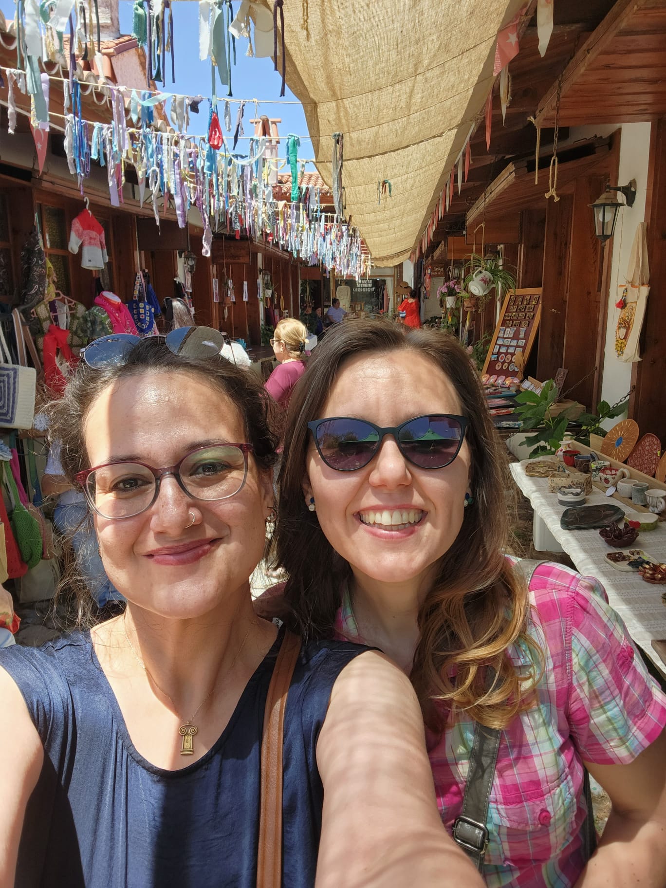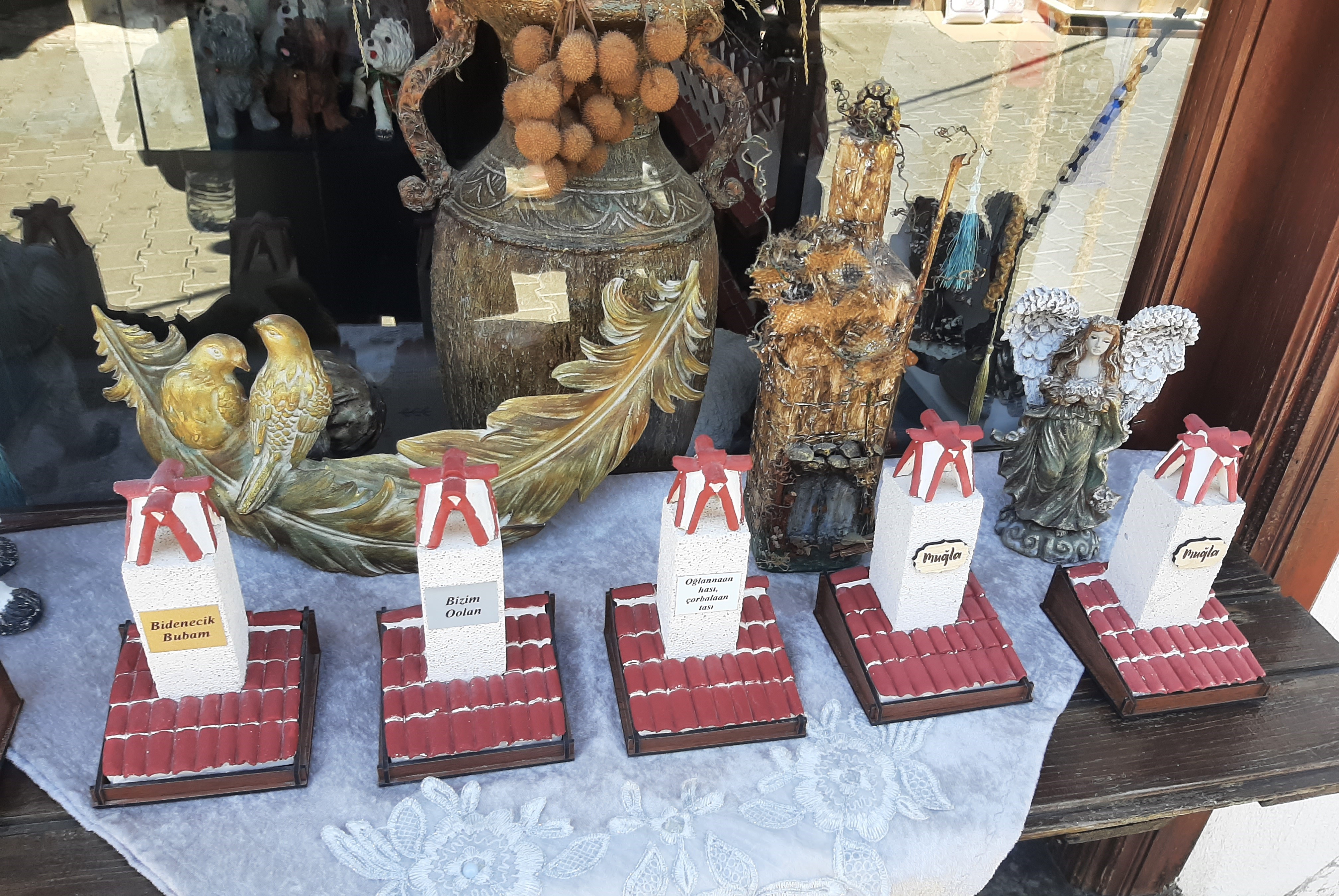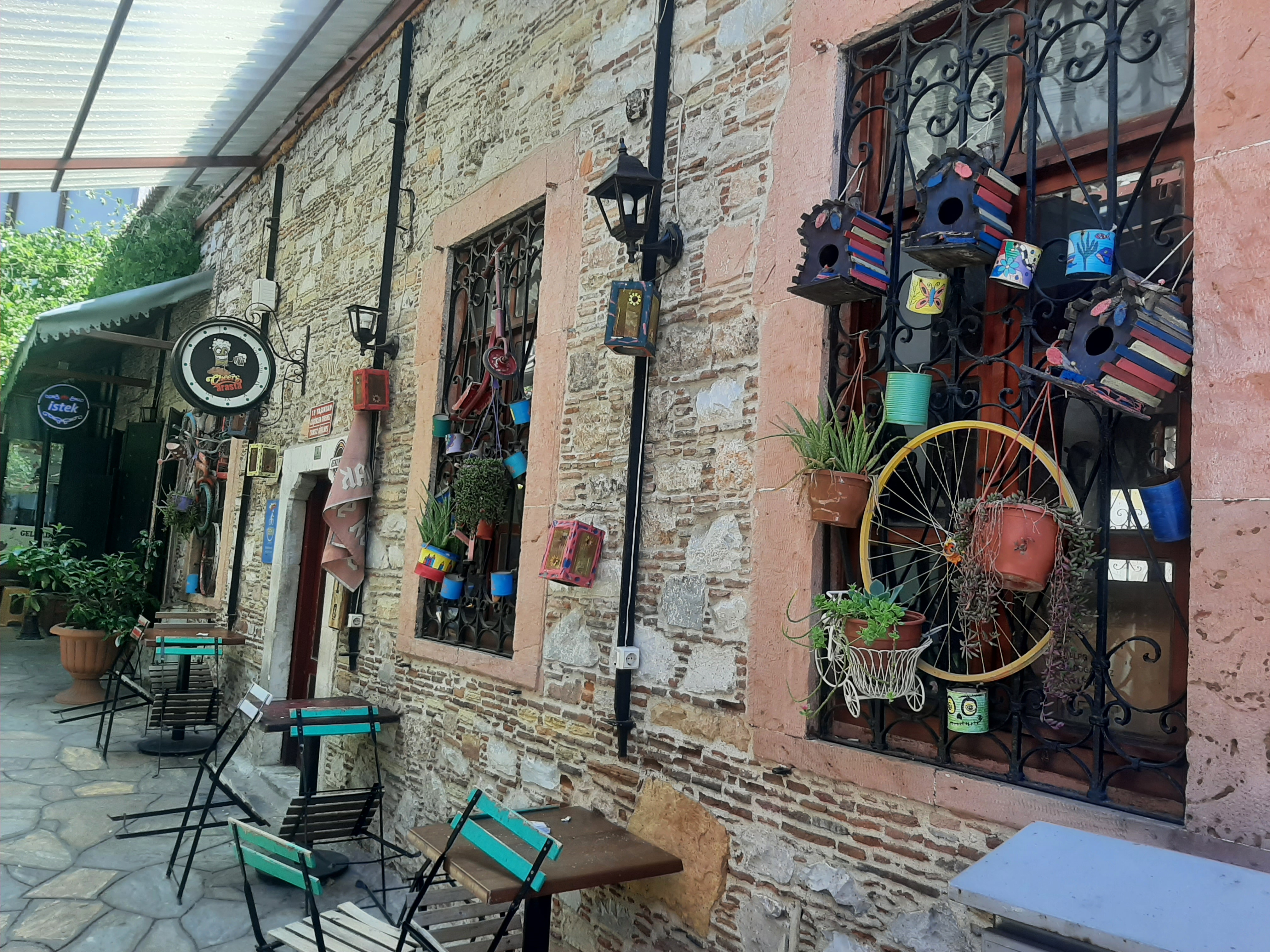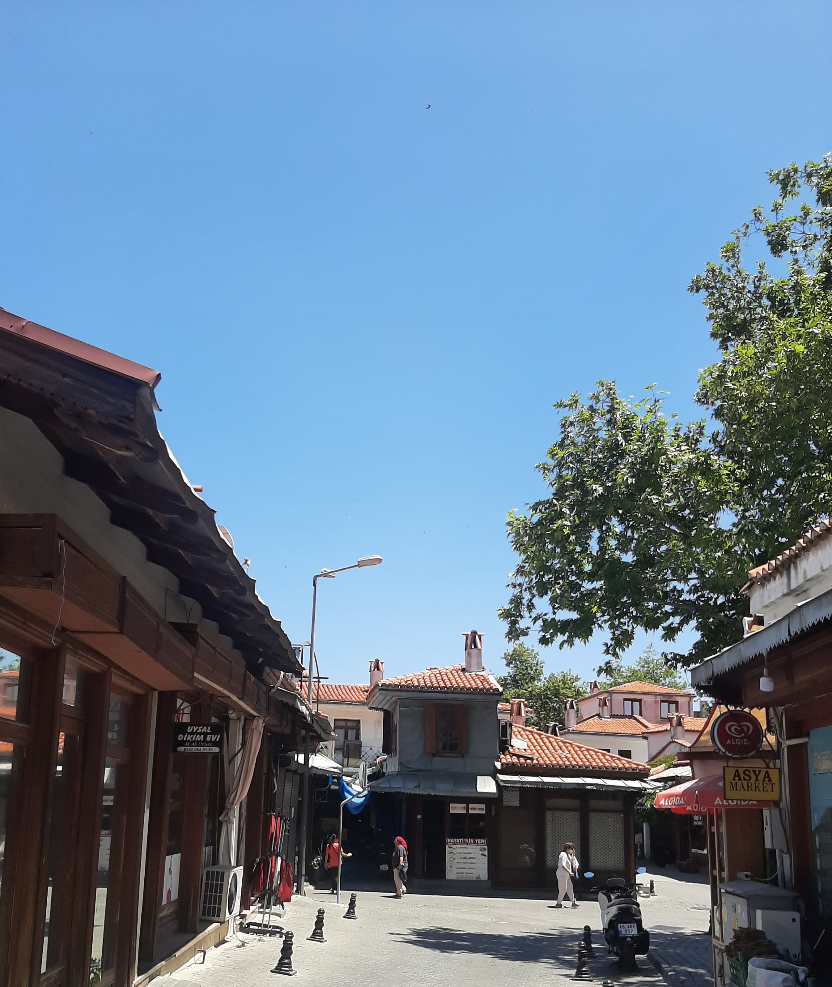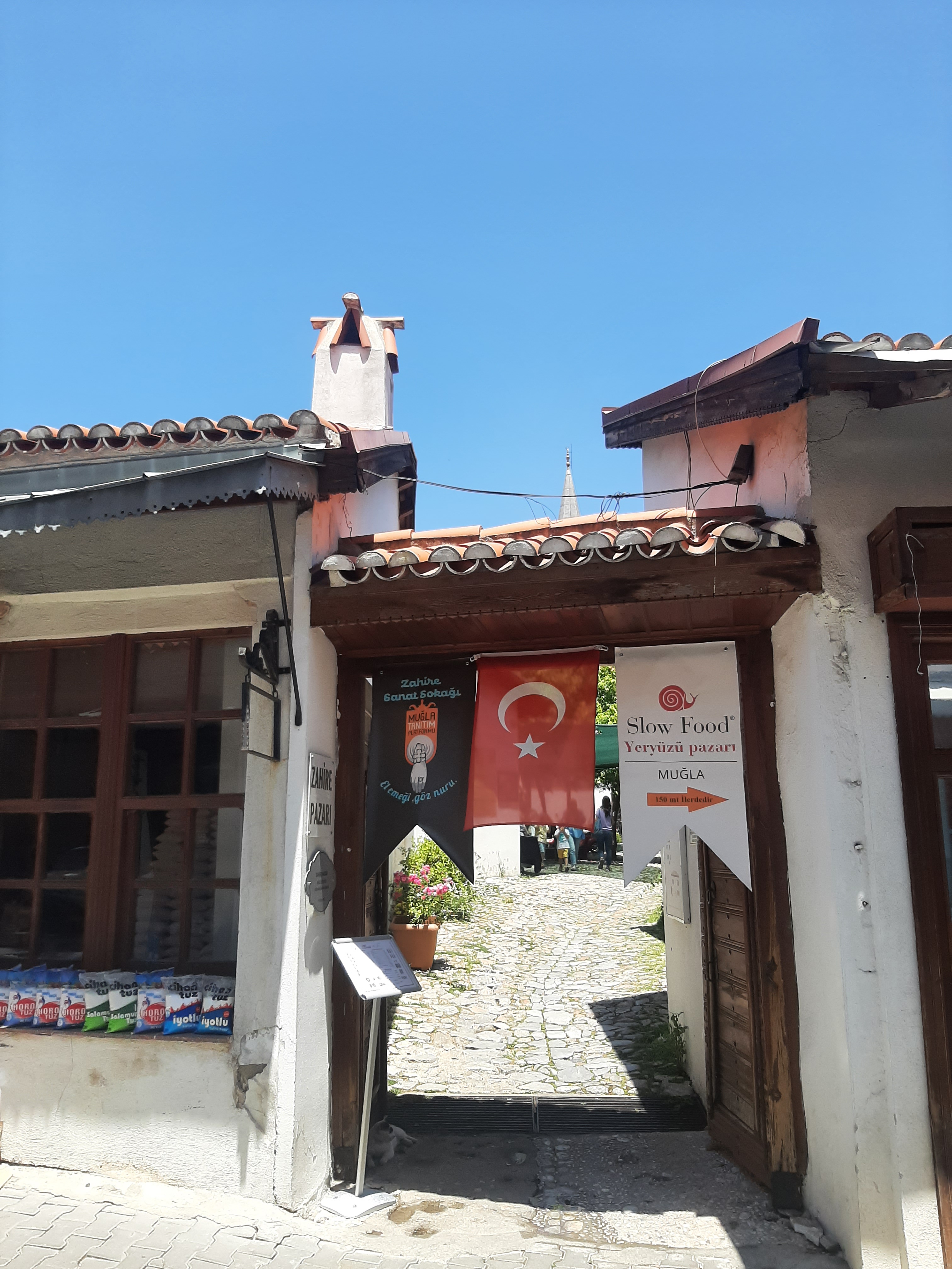 Öğle yemeğimizi çarşıdaki mütevazı bir esnaf lokantasında yedik. Sonra belediyenin başka bir tesisine, Kültür Evi’nin bahçesine kahve içmeye oturduk. Muğla’nın köklü ailelerinden Şereflilere ait, restore edilmiş bir konaktı burası. Binanın içinde eski Muğla evlerine dair eşyalar sergileniyor. Edebiyat ve sanat etkinlikleri de düzenleniyormuş bazen. O arada annesi Ege’yi arabasında uyuttu, benim sıcaktan başım ağrıdı ve kendimizi yine Uygulama Otelinin Çay Bahçesine attık. Yoksa Evrim Saburhane Hamamına ve Yağcılar Hanına da götürecekmiş beni. O da günlerin uykusuzluğuyla yorgundu, muhabbet iyi gelince unuttuk gitti. Sağlık olsun. Yağcılar Hanına gitsek Yağcılar Zeybeği çalardı kafamda kesin. Ama gün boyu o tatlı bacalara baktıkça ‘Köyceğiz Yolları’ türküsü geldi kulağıma. ‘’Bizim için yapılmış şu Muğla’nın damları’’ 😊