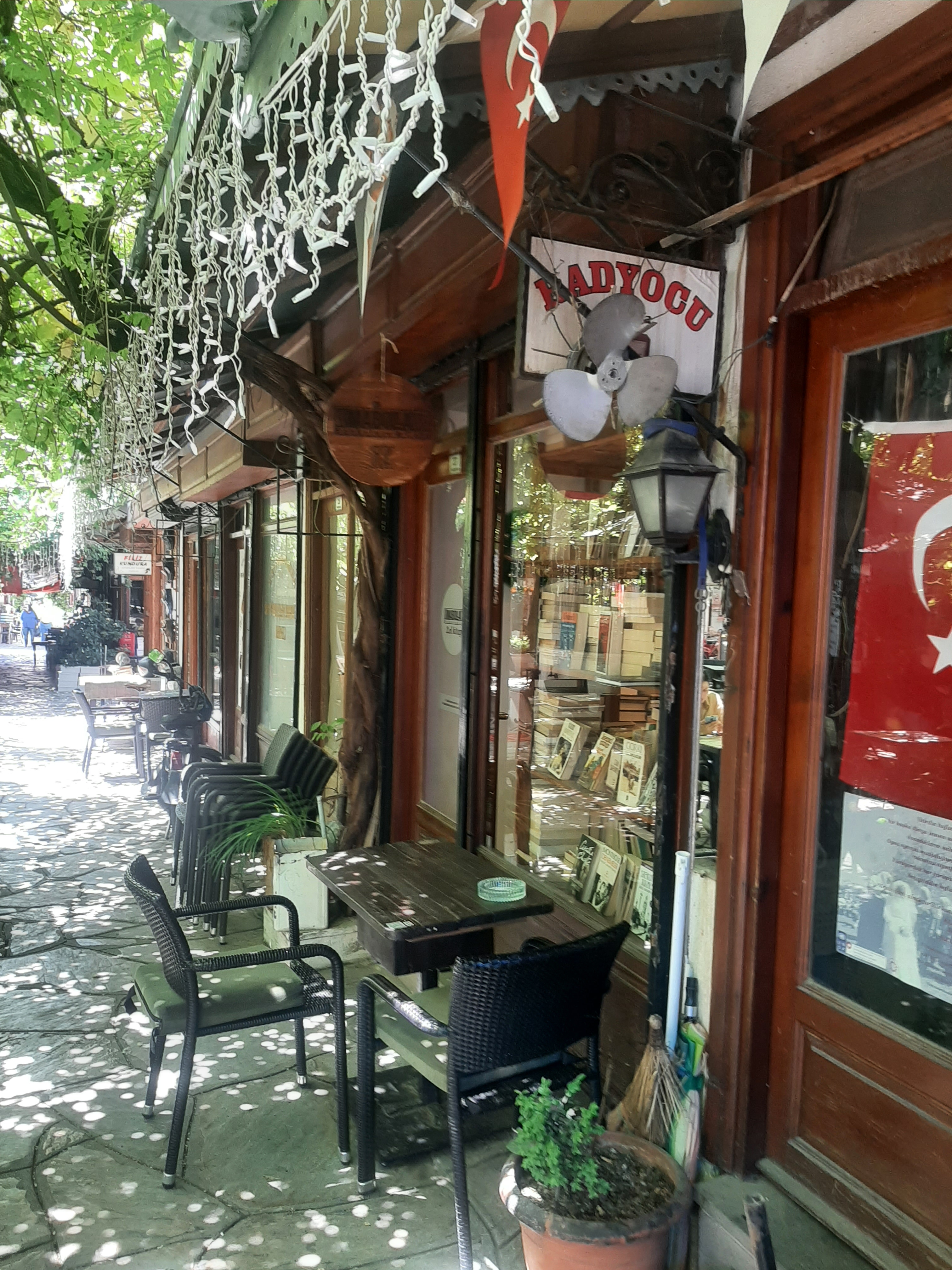 İftarlık Gazoz’un bir kısmı Ula’nın, bir kısmı Muğla’nın eski çarşısında çekilmiş. Ege dedesiyle eğlenirken, Evrim beni eski çarşıya götürdü. Filmdeki şadırvanın önünde fotoğrafımı çekti. Şadırvanın etrafında bir sahaf, bir de radyo tamircisi var. Yakında bir yerde de efelere körüklü çizme yapan bir kunduracı duruyor hala. Evrim’in çocukluğundan, hatta daha da öncesinden beri orada var olan dükkanlarmış bunlar. Arkadaşım, şimdi çocuğuyla birlikte çocukluğunun mekanlarını yeniden keşfediyor.