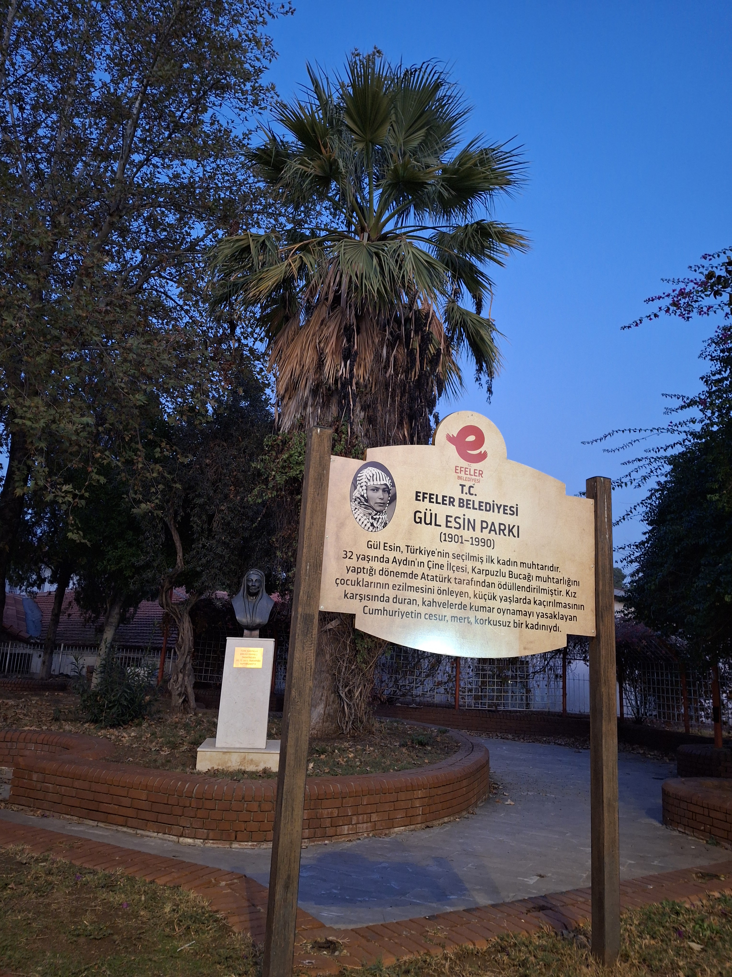 Akşamüstü toplanmakta olan pazara uğrayıp biraz daha kuru incir aldık. Araç trafiğine kapatılmış, okulların dizildiği ve ağaçlarının upuzun olduğu Gençlik Caddesinden geçtik, Zincirli Han’ı bulduk. Yöresel bir şeyler yemeği düşündük ama pahalı gelince öğretmenevine geri döndük. Dönerken Gül Esin Parkının önünden geçtim. Türkiye Cumhuriyeti’nin ilk kadın muhtarı Gül Esin, Aydınlıymış. Çine ilçesinin Karpuzlu Bucağında, 1933 yılında, daha 32 yaşında gencecik bir kadın iken, 7 erkek adaya karşı 500 oyla muhtar seçilmiş. Bucağının kahvehanelerinde kumar oynanmasını yasaklamış, kızların kaçırılmasını engellemeye çalışmış. Cumhuriyet ne yaptı ki, diye arsızca sırıtan çember sakallı bir adamla muhatap olmuş ve çok öfkelenmiştim yakın zamanda. Cumhuriyet, 92 yıl önce bucağını güzelleştirmek isteyen bir kadını muhtar yapmış. Şimdi o kadının memleketinde büyükşehir belediye başkanı da bir kadın. Hem de on beş yıldır. Tıpkı Gül Esin gibi o da şehrini güzelleştirmek için çalışıyor. Aydın’ın eski adı Güzelhisar’mış zaten.