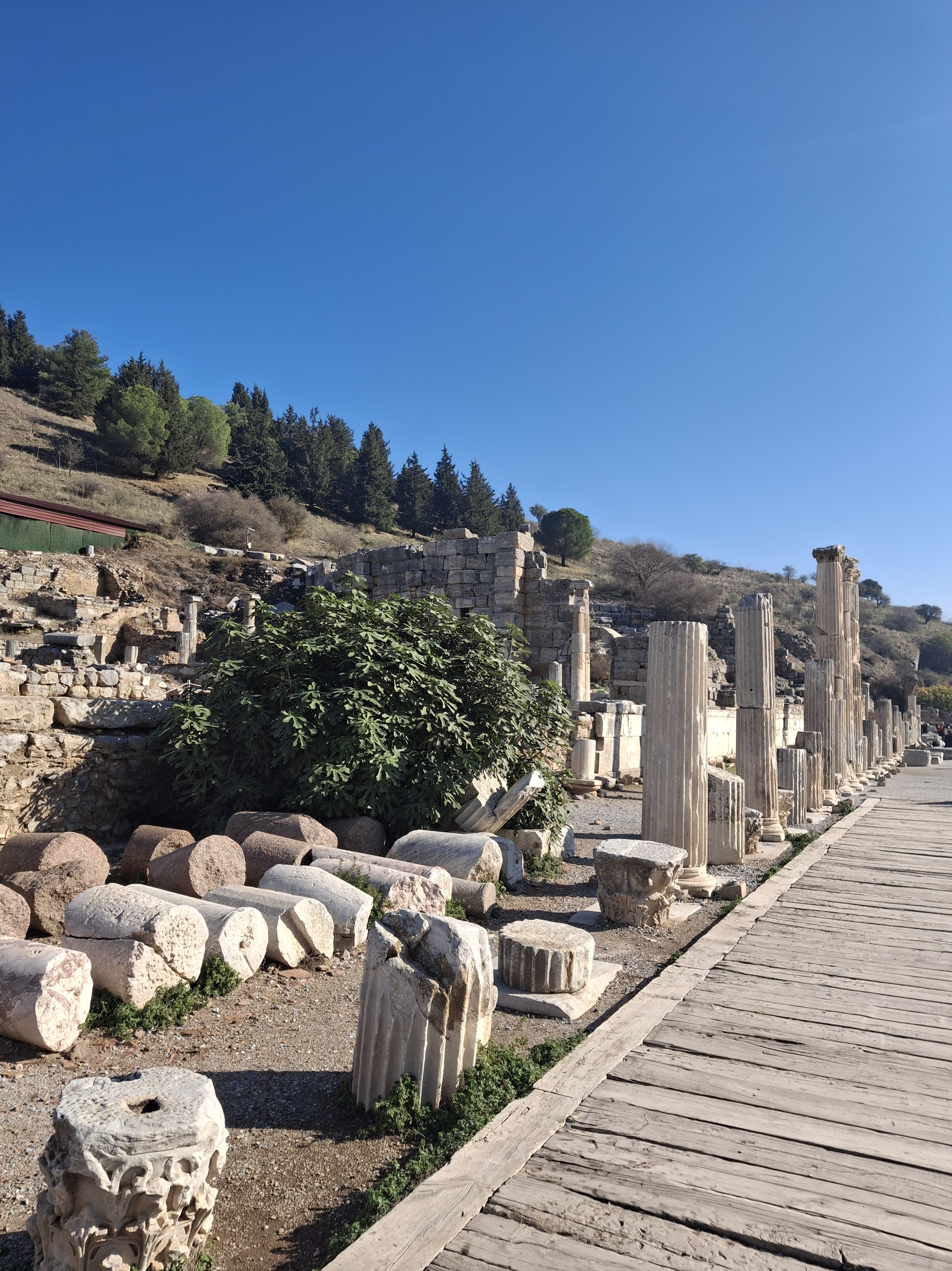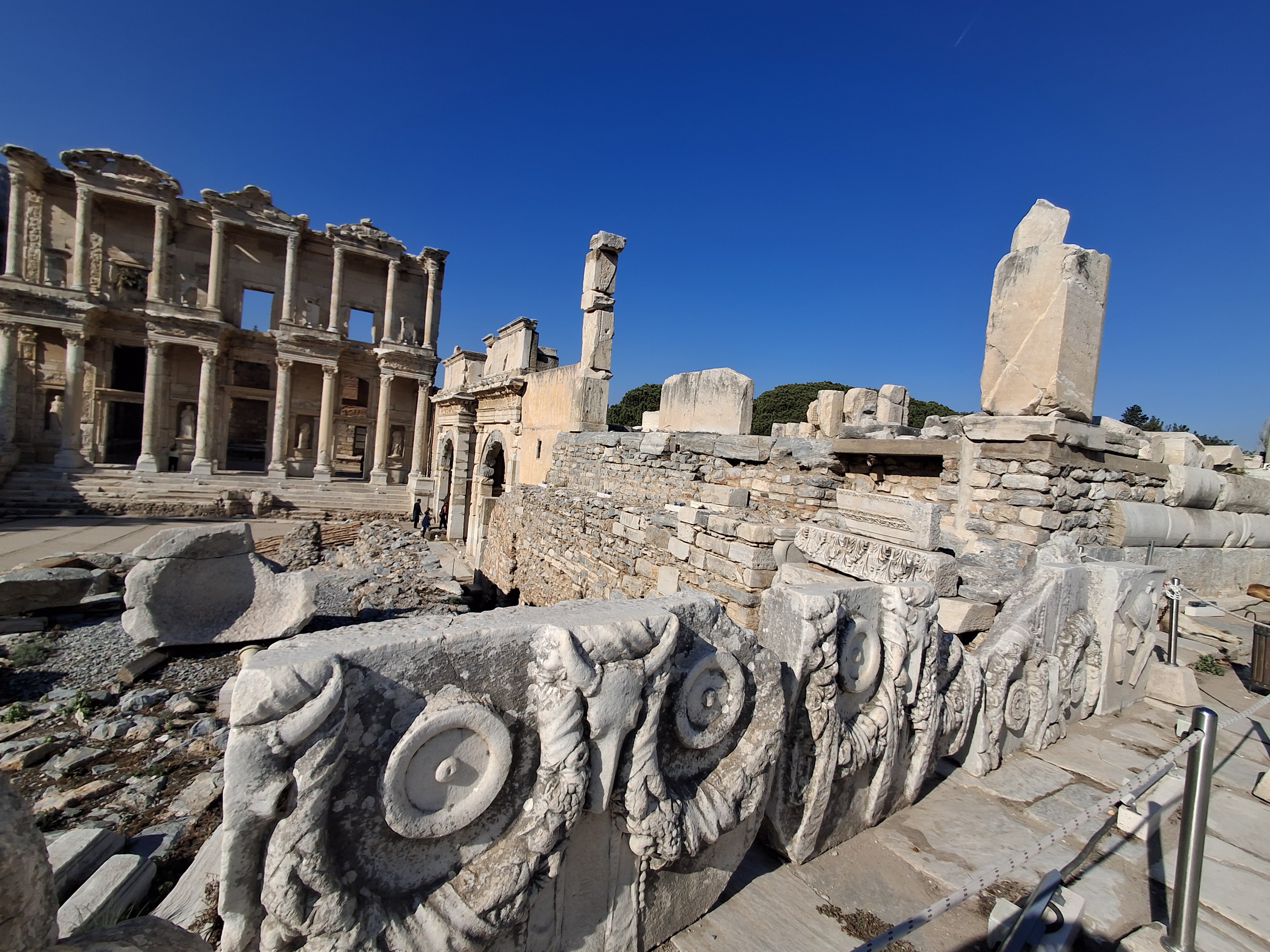 Efes; M.Ö. 6000’li yıllardan yani Cilalı Taş Devrinden beri bir sürü devlete şehir olmuş. Lidyalılar, Persler, Helenler, Romalılar, Bizanslılar… Hepsinden izler var. Üniversitede dersim olan Roma Hukuku bu taşların arasında uygulanmış mesela. Tıpkı İtalya’daki Forum Romana gibi! Dünyanın yedi harikasından biri sayılan Artemis Tapınağı, Celsus Kütüphanesi, antik tiyatrosu, agorası ile o zamanki insanların nasıl yaşadıklarını anlayabilmek mümkün. Efes Antik Kenti 2015’te UNESCO Dünya Mirasına eklenmiş. Sindire sindire dolaştık. Memleketimizde muazzam zenginlikler var!