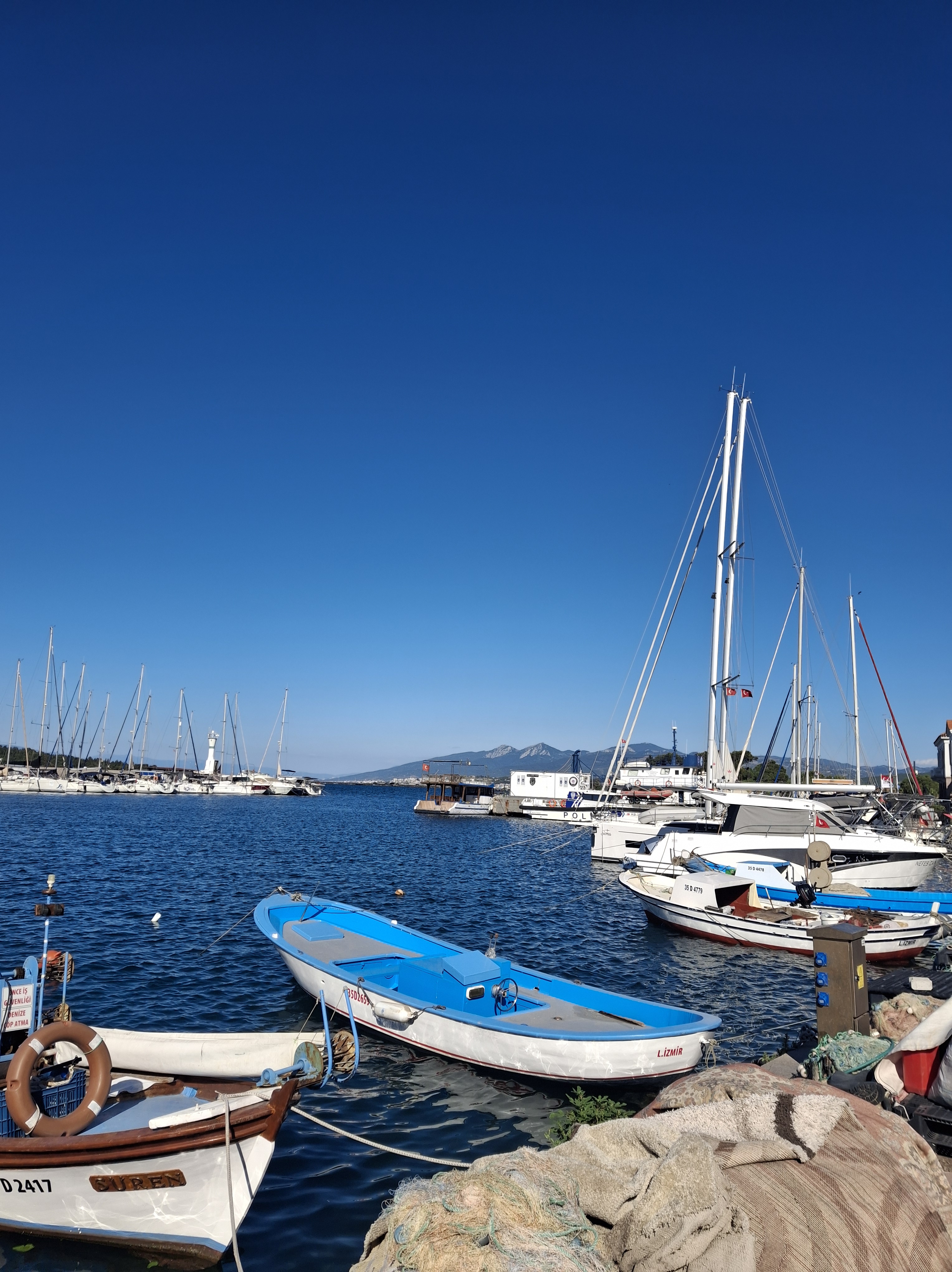 Urla’nın İskele Mahallesi, filmlerdeki Ege deniz kenarı kasabası gibi; kayıklar, tekneler, ağlar, balıklar… Mis gibi iyot kokusunu içime çektim! Yemeği orada yiyip Sanat Sokağı’nda dolaşmak için Urla ilçe merkezine geçtik. Arnavut kaldırımlı, eski zarif binaların dizildiği daracık sokaklardan birine arabayı park ettik. Boş bir arazideki duta daldık, Sanat Sokağı’ndaki Tarihi Girit Pastanesi’nde kazandibi yedik, fotoğraflar çekildik ve güneş batarken dönüş yoluna geçtik. Gitmeden bir de vapur sefası yapayım diye Üçkuyular’dan Karşıyaka’ya geçen arabalı vapura bindirdi bizi aslan eniştem. Tuna’yla güvertede denizin köpüklerini ve vapurun etrafında pike yapan martıları izledik. Martılar çişlerini ve kakalarını aynı anda yapan kuşlarmış. Tuna kuşlara dair ne çok şey biliyor!