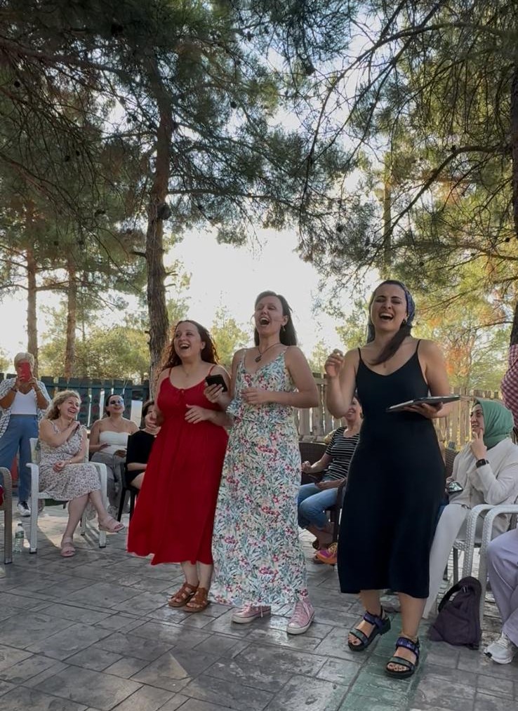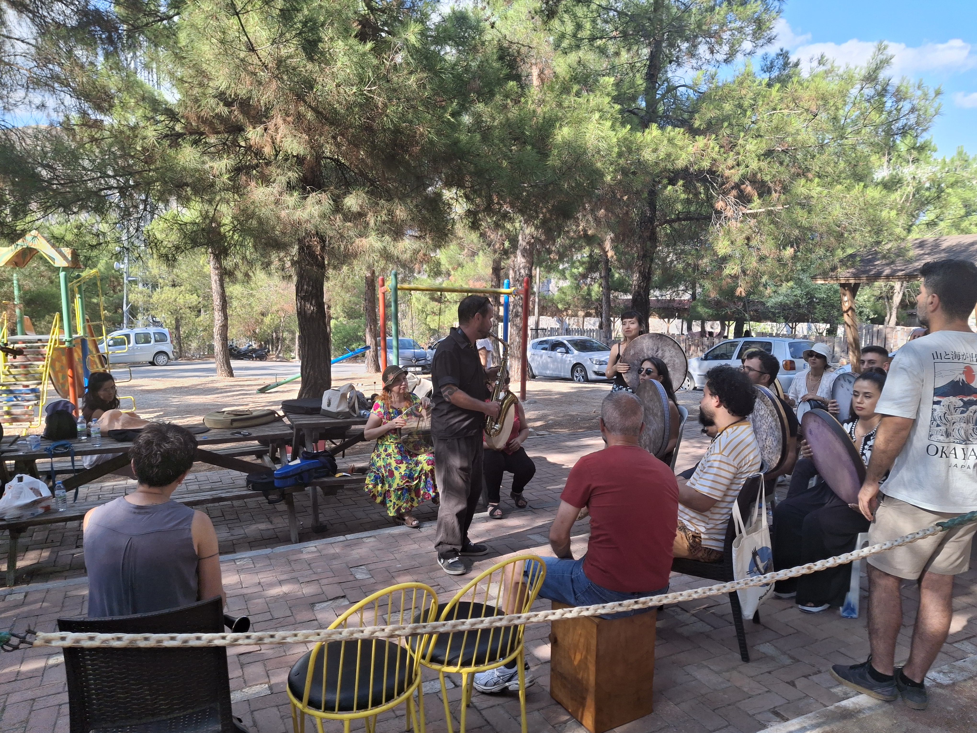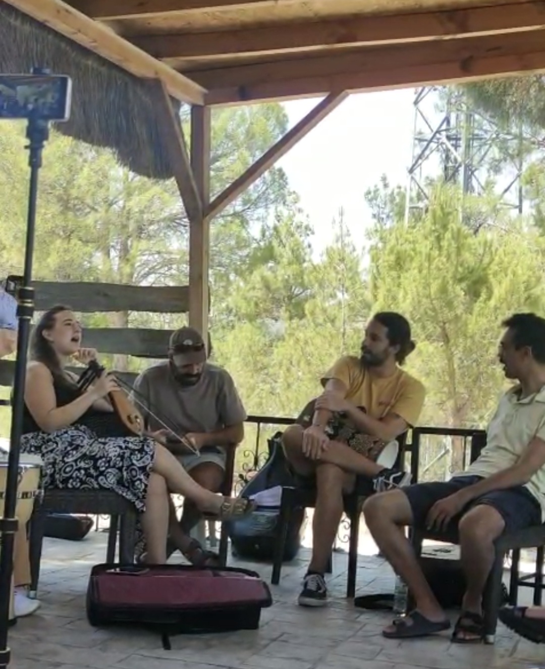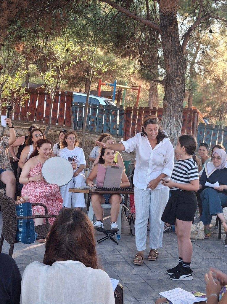 16 Ağustos Cumartesi sabahı Ankara’dan köylüm Utku’yla yola çıkıp öğlen köyün kurulduğu Amasya Vadipark’a vardığımızda Chrisanthi’nin Yunanistan Müziği Atölyesi çoktan başlamıştı. Chrisanthi ile 2022’de katıldığım ilk Müzik Köyünde, Minör Asya Repertuarı Atölyesinde tanıştık. Klasik kemençe ustası, müthiş yetenekli, güler yüzlü ve bir o kadar da mütevazı, gencecik bir kadın sanatçı. 2022’den beri o da Müzik Köylü. Farklı periyotlara katıldığımız için epeydir görüşemiyorduk. Bu yaz onunla ve onun udi arkadaşı, diğer atölye yürütücüsü sanatçılardan biri olan Güney Kıbrıslı Gerasimos Papadopoulos ile birlikte çalmak çok keyifli oldu.