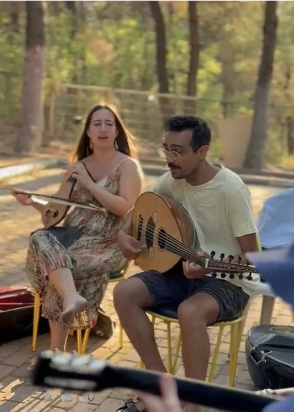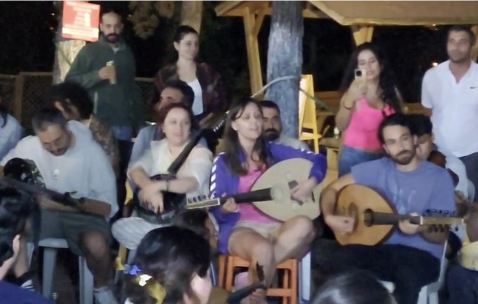 Gerasimos, -kendi deyimiyle Jerry- neşeli, komik ve o da müthiş yetenekli, bilgili bir müzikolog. Müzik Köyü için çektiği tanıtım videosunda Lübnan’ın divası Feyruz’un çok sevdiğim ‘Saalouny N’ass’ını çaldığını görünce çok sevinmiştim. Atölyesinde öğrettiği ve son gece konserinde çaldığımız, hem Arapça, hem kendi yazdığı Yunanca sözleriyle söylediğimiz şarkılardan biri de o oldu. Hatta meğer son bir kaç yıldır iş yerimde dilekçe yazarken, Klasik Türk Müziğinin enstrümantal eserlerini; saz semailerini, peşrevlerini arka fonda dinlediğim youtube kanalı da onunmuş. (GouTouPou) Ut gibi yelpazesi geniş bir enstrümanı hem Türk Müziği ve makam öğrenerek, hem de Arap, Ermeni ve tabi Yunan ustaları dinleyerek geliştirmiş. Beş günlük atölyede Feyruz şarkısının yanında; ‘Nubar Nubar’ diye bir Ermeni halk ezgisini, Urfa Divanı’nı, Stelios Kazancakis’ten ‘Oğlan Oğlan’ diye bildiğim türkünün Yunan versiyonunu ve Tunuslu udi Enver İbrahim’in ‘Parfum de Gitane’sini de öğretti.