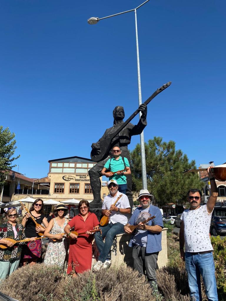 İki telli atölyesinde Nazım Hoca’yla bu yaz Ürgüplü derlemeci ve halk ozanı olan Refik Başaran’dan iki tane Ürgüp türküsü çalıştık. ‘’Şen olasın Ürgüp’’ ve ‘’Dam Başında Sarı Çiçek…’’ Hatta son gün, öğlen güneşinde de olsa yedi kişilik atölye grubumuzla, Nazım Hocanın üşenmeden atölyede bize ödünç vermek için İzmir’den getirdiği curalarımızı alıp 5 km ötedeki Ürgüp ilçe meydanına gittik, Refik Başaran heykelinin altında bu iki türküyü çalıp söyledik. Ozanların diliyle; havalandırdık. Refik Ustanın ruhuna değsin, dedik. Bu Müzik Köyü periyodunun bendeki en anlamlı anısı bu oldu galiba.